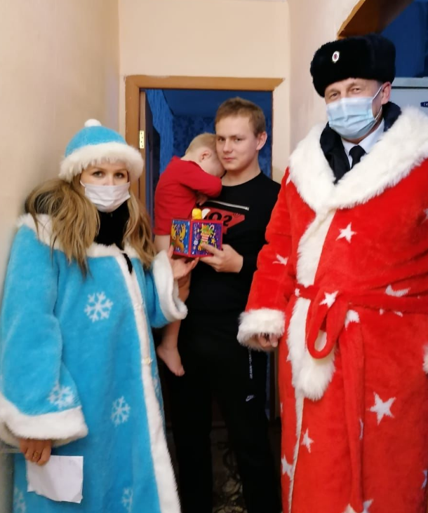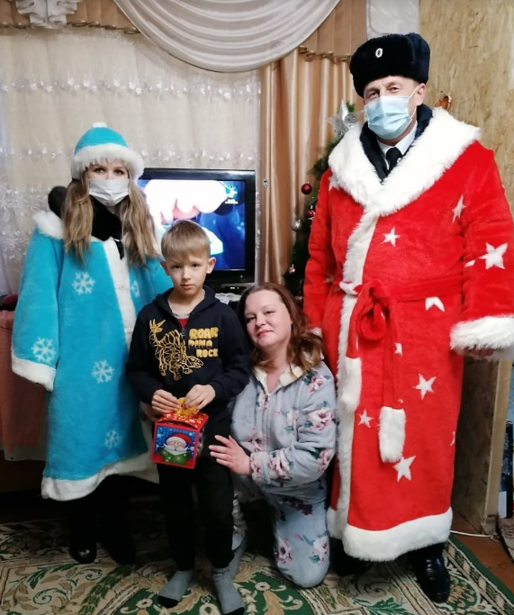 Дед Мороз в погонах со Снегурочкой лично поздравили ребят и их родителей с наступающим Новым Годом, подарили подарки, пожелали всем здоровья, благополучия, как можно больше улыбок, ярких, интересных и запоминающихся моментов. Конечно же, напомнили детворе и родителям о соблюдении правил законопослушного поведения.
