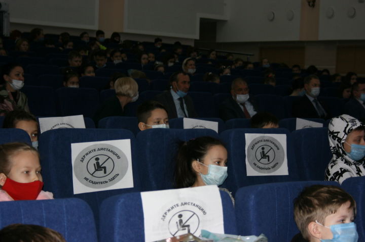 С поздравительной речью для «золотого фонда Мензелинского района» выступил глава района Айдар Салахов: «По доброй традиции в конце года мы собираемся для того, чтобы поздравить детей, достигающих успехов в учёбе. Обычно это мероприятие мы проводили в здании драматического театра, но количество способных ребятишек растёт, и в этом году места б нам там не хватило. Очень отрадно, что ежегодно число отличников увеличивается, на сегодняшний день их 225 человек, не считая активистов. Вы, отличники, должны держать планку района! Участвуйте в олимпиадах, занимайтесь спортом, принимайте участие в культурных мероприятиях! Всех в наступающим Новым годом!»