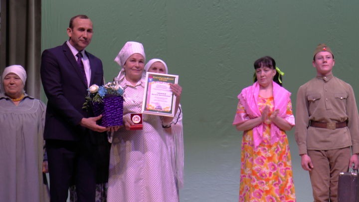 В дополнение к 100 тысячам рублей от республики, еще один сертификат на 30 тысяч рублей от имени района вручил руководитель Исполнительного комитета района Камиль Назмиев. В этот же день руководитель народного театра “Нур” Муслима Гайниева была награждена знаком “100-летие Татарстана”. Накануне церемонии награждения в районном Дворце Культуры состоялась премьера спектакля “Тол хатыннар, тол кызлар”, который принес коллективу признание.