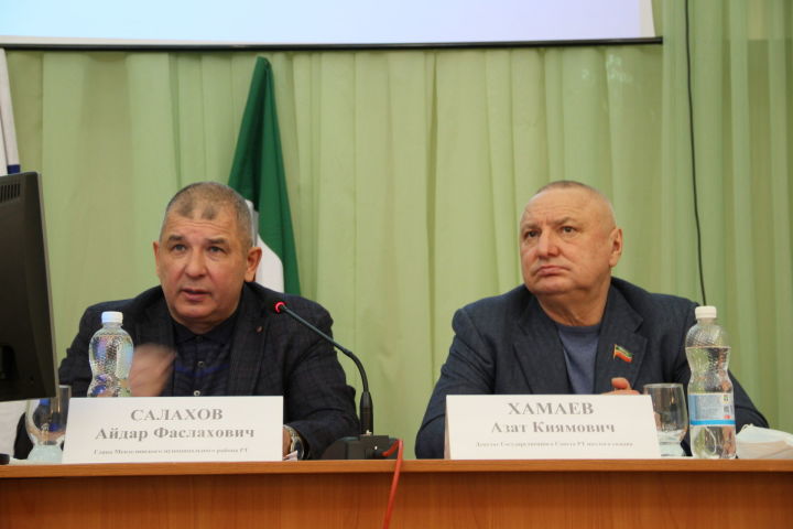 (Мензелинск, Дильфас Галиев, "Мензеля-информ") Во встрече приняли участие глава района Айдар Салахов и депутат Государственного Совета Республики Татарстан шестого созыва Азат Хамаев. Вел мероприятие глава района Айдар Салахов. Он рассказал о социально-экономическом развитии района и предстоящих планах.