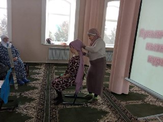 - Сначала участниц поприветствовала руководитель районного отделения Союза мусульманок Роза Фахретдинова. Затем они разделились на две команды – “Йолдыз” и “Нур” – и проверили в викторине свои знания об истории хиджаба и элементах одежды мусульманок. Затем был проведен мастер-класс по завязыванию платка. Было и дефиле, - рассказала она. В завершение мероприятия имам-мухтасиб Мензелинского района Рамзиль хазрат Садыков обратился к участницам с наставлениями и вручил им подарки. Рамзил хазрат и Роза Фахертдинова отметили, что подобные мероприятия оказывают положительное влияние и на представителей молодого поколения.