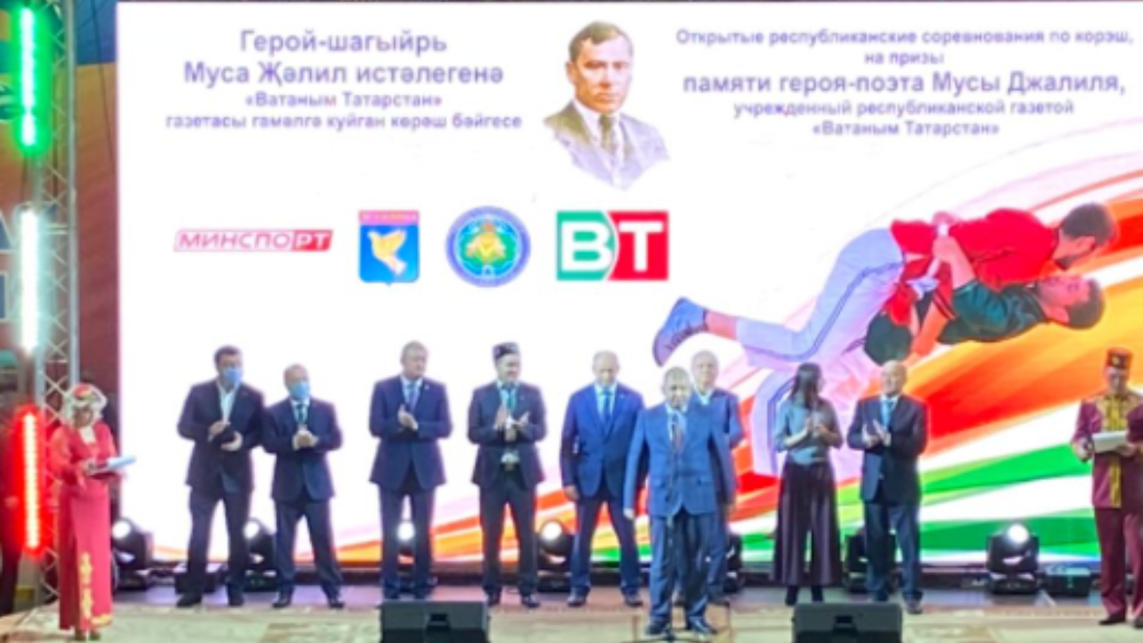 Первыми на сцену были приглашены мастера спорта -ветераны Мензелинского района по борьбе Вил Магдиев, Фарит Хаматдинов, Мавляветдин Закиров, Фриль Ахметов, Ракип Файзуллин (главный судья турнира), Музагит Латыпов, Айдар Назмутдинов, Хамит Валиев, Ришат Шарипов, которым были вручены благодарственные письма Федерации Корэш.