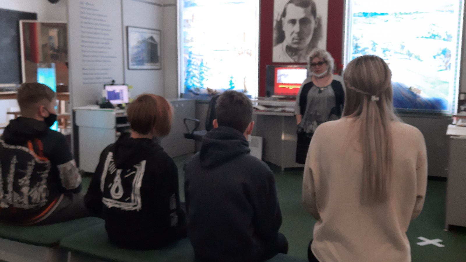 В дверях холла, детей приветливо встретила заведующая музеем Григорьева Алсу Васильевна и сопроводила в зал. Музей занимает одну аудиторию в педагогическом колледже. Здание – памятник истории республиканского значения.
