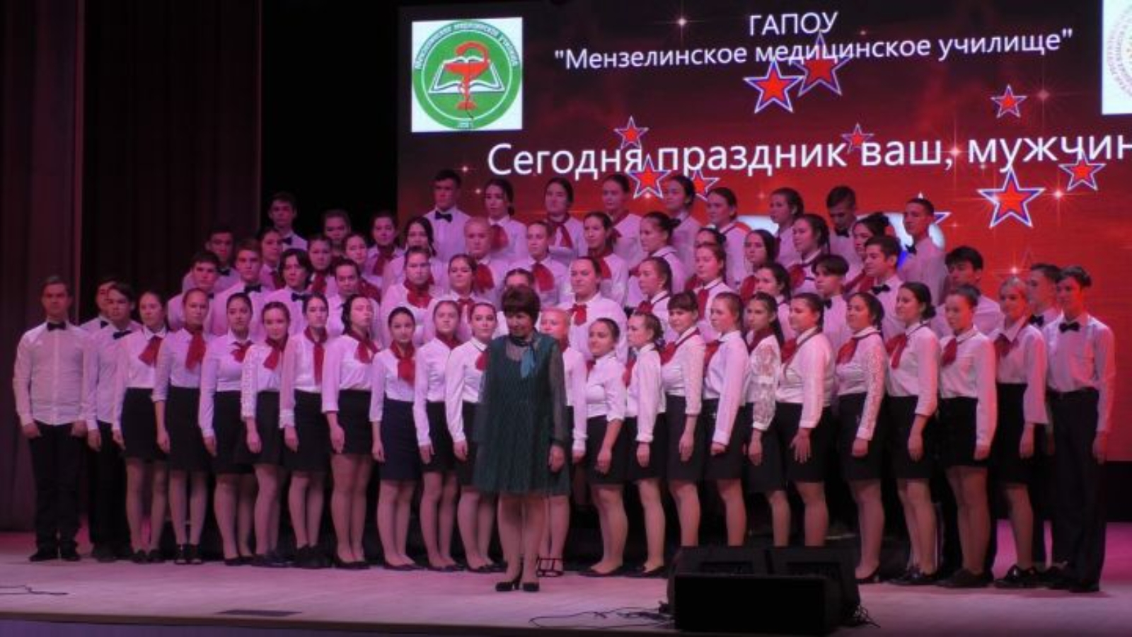 (Мензелинск, «Мензеля-информ»). В Районном Дворце Культуры студенты и преподаватели ГАПОУ "Мензелинское медицинское училище" представили праздничный концерт ко Дню Защитника Отечества. В ходе концерта перед собравшимися выступили с поздравлениями заместитель главы Мензелинского муниципального района Наиль Хисамбеев, военный комиссар района Сергей Владимиров.