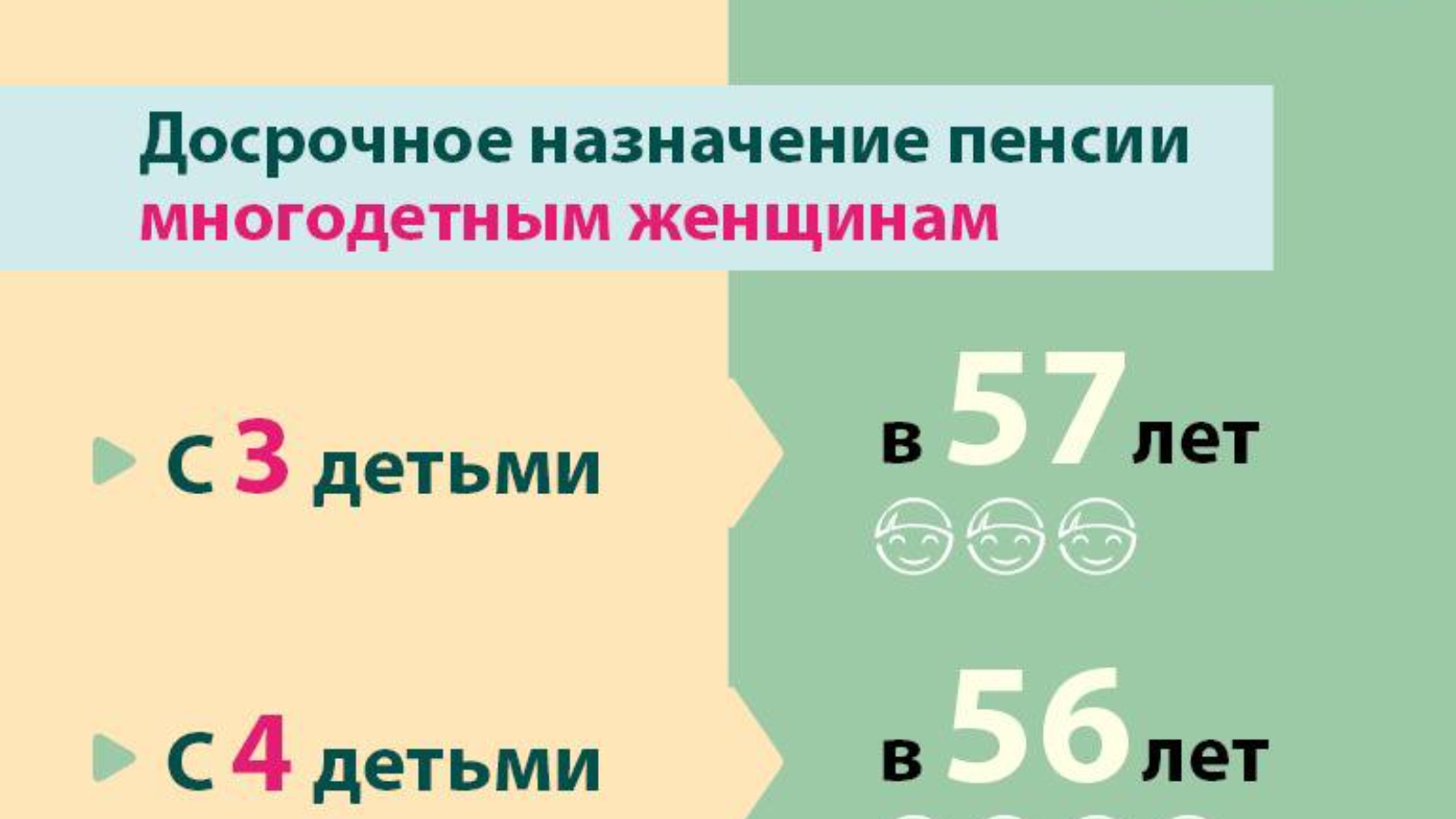 Клиентская служба в Мензелинском районе информирует, что в соответствии с пенсионным законодательством, вступившим в силу с 1 января 2019 года, женщины, родившие 5 и более детей в 2021 году имеют право уйти на пенсию в 50 лет. А вот мамы троих детей, достигшие 57 лет, смогут выйти на пенсию с 2023 года. Это коснётся женщин 1966 года рождения.