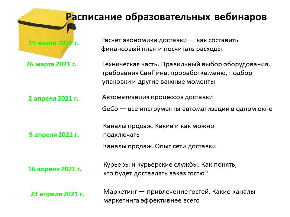 Цикл образовательных семинаров "Доставка как драйвер ресторанного бизнеса" - 12 МАРТА – 7 МАЯ.