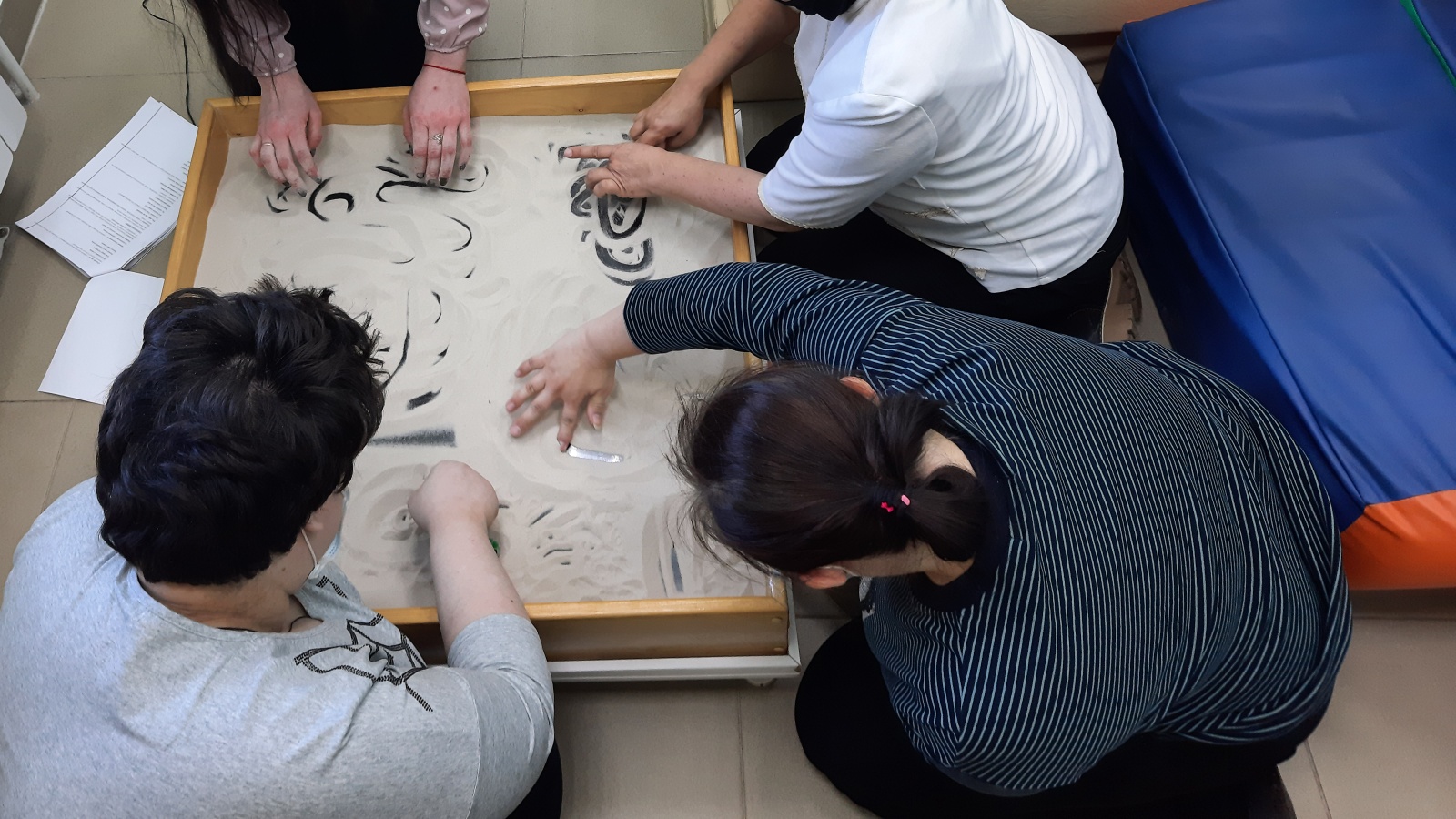 Целью занятия являлось стабилизация эмоционального фона, формирование навыка экспериментирования с песком, развитие кинестетической чувствительности и мелкой моторики рук. Все задания участники группы выполняли с удовольствием, следующее занятие состоится 06 апреля.