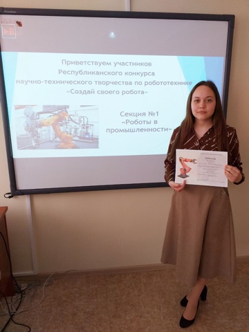 Исламова Лилия, студентка 3 курса направления "Дошкольное образование" Мензелинского педагогического колледжа имени Мусы Джалиля стала призёром третьей степени I​ республиканского конкурса​ научно- технического творчества "Создай своего робота" среди студентов ПОО РТ.​