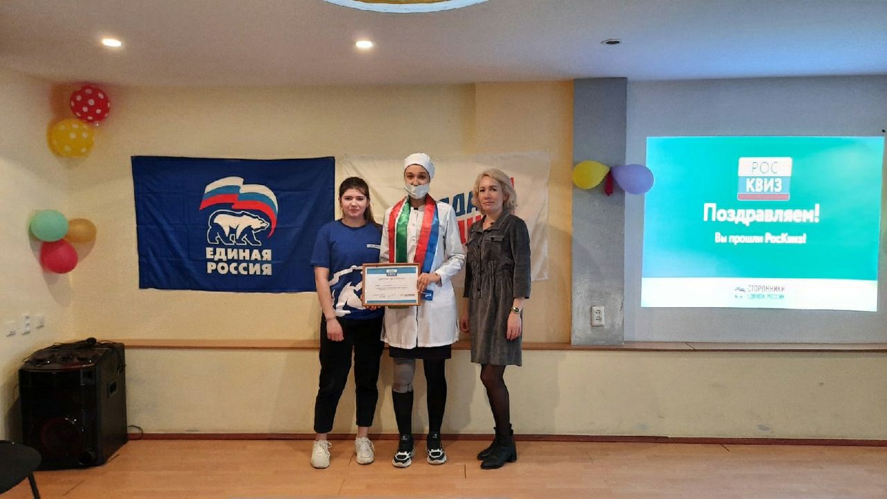 9 апреля 2021 г. специалисты ММЦ "Веста" совместно с активистами "Молодой гвардии" провели в Мензелинском медицинском училище интеллектуальную игру "РосКвиз", приуроченную ко Дню спорта. Все участники были награждены сертификатами и подарками от Мензелинского МО "Единая Россия".