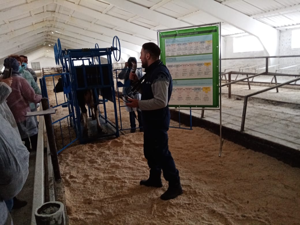Практическая часть семинара прошла на базе молочного комплекса “Калмурзино”. Здесь рассмотрели технологию кормления телят. Участникам семинара была продемонстрирована схема выпойки телят и иммунопрофилактических мероприятий. Ознакомились с обезроживанием, идентификацией, молочным такси, банком молозива, демонстрацией ветеринарной техники. Изучали технологию кормления и содержания телок случного возраста. Поделились опытом по профилактике заболеваний молочных желез(мастит), мочеполовых органов (эндометрит), копыт, нарушений обмена веществ( кетоз, ацидоз).