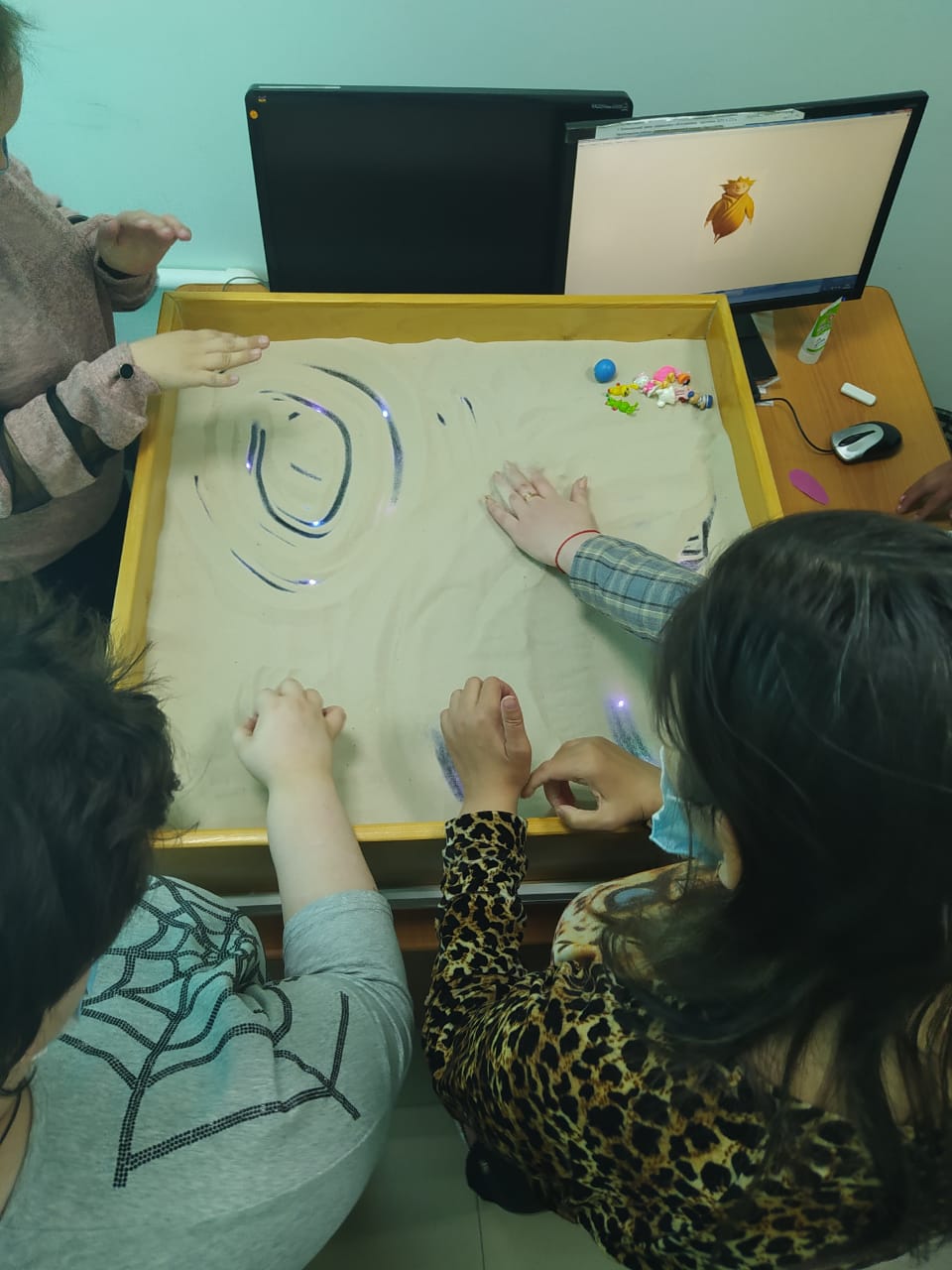 Целью занятия являлось вызвать положительные эмоции, связанные с новыми впечатлениями; формировать представление о свойствах песка; способствовать усидчивости, внимательности; формировать навыки пространственной деятельности и работы по заданию.
