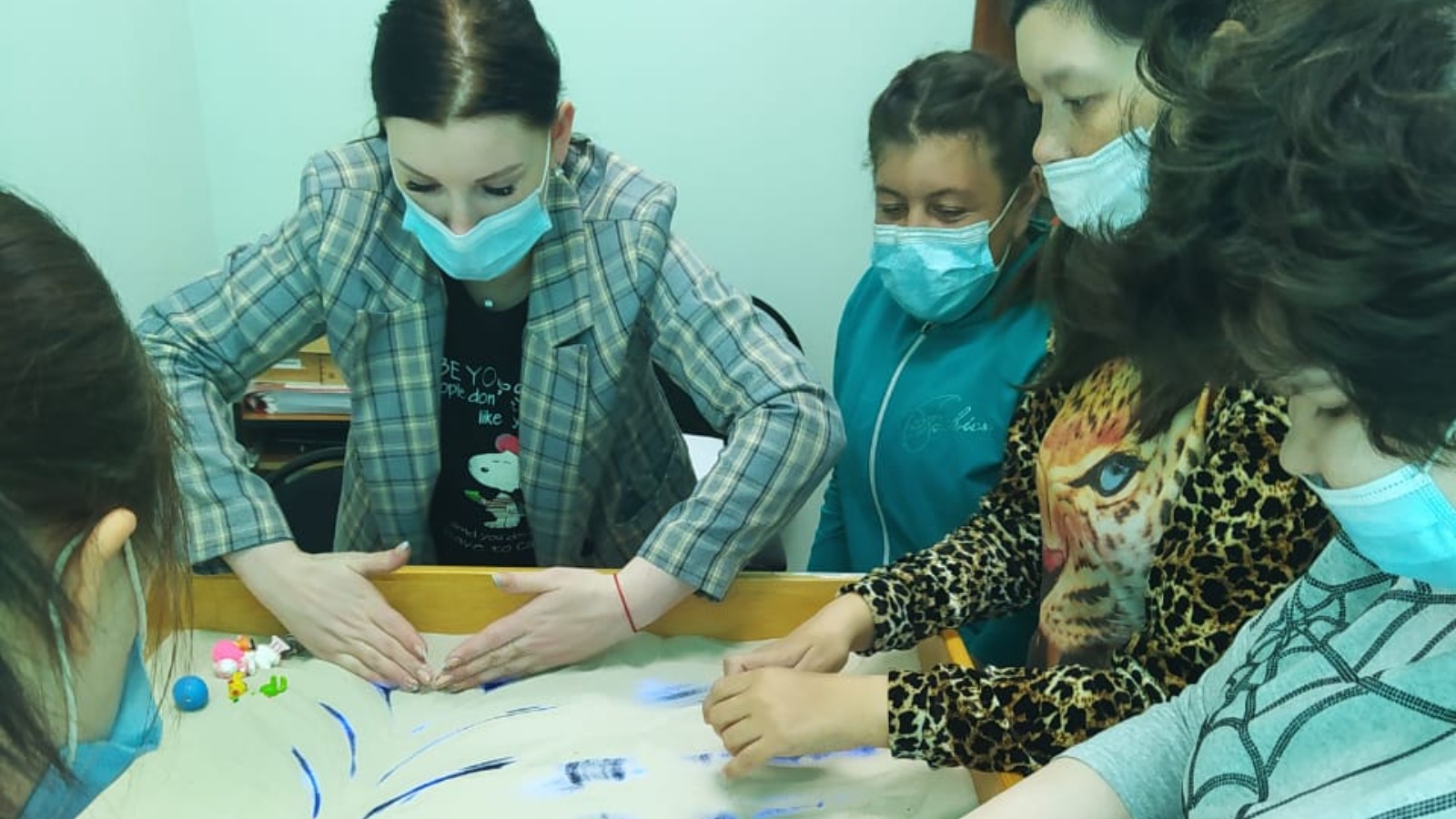 6 мая в Комплексном центре социального обслуживания населения Мензелинского района, в группе дневного пребывания, в рамках реализации рабочей программы «Ты можешь все!» для людей с ментальными нарушениями в возрасте от 18 до 40 лет, психологом Бочкаревой Евгенией было проведено групповое занятие. Путешествовали в песочную страну, выполняли упражнения на мелкую моторику, с использованием игрового набора «Дары Фребеля» и учились ориентироваться в пространстве, используя магнитный конструктор.