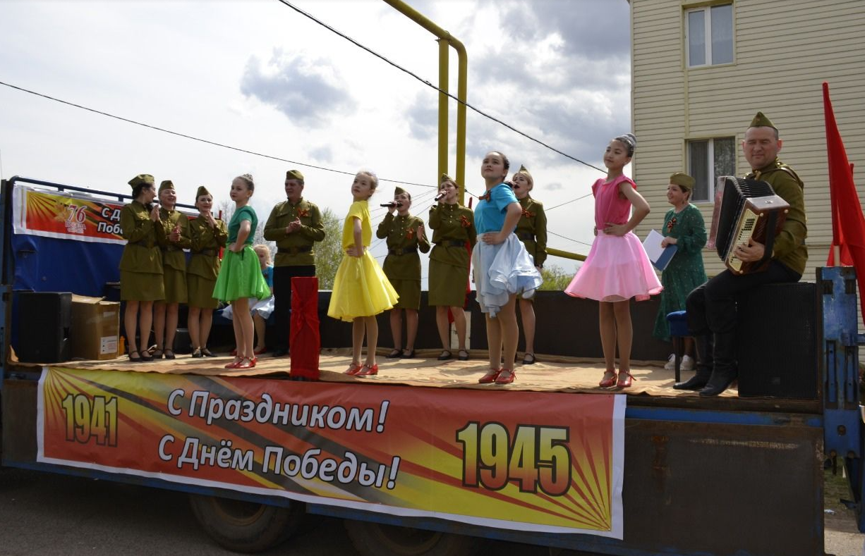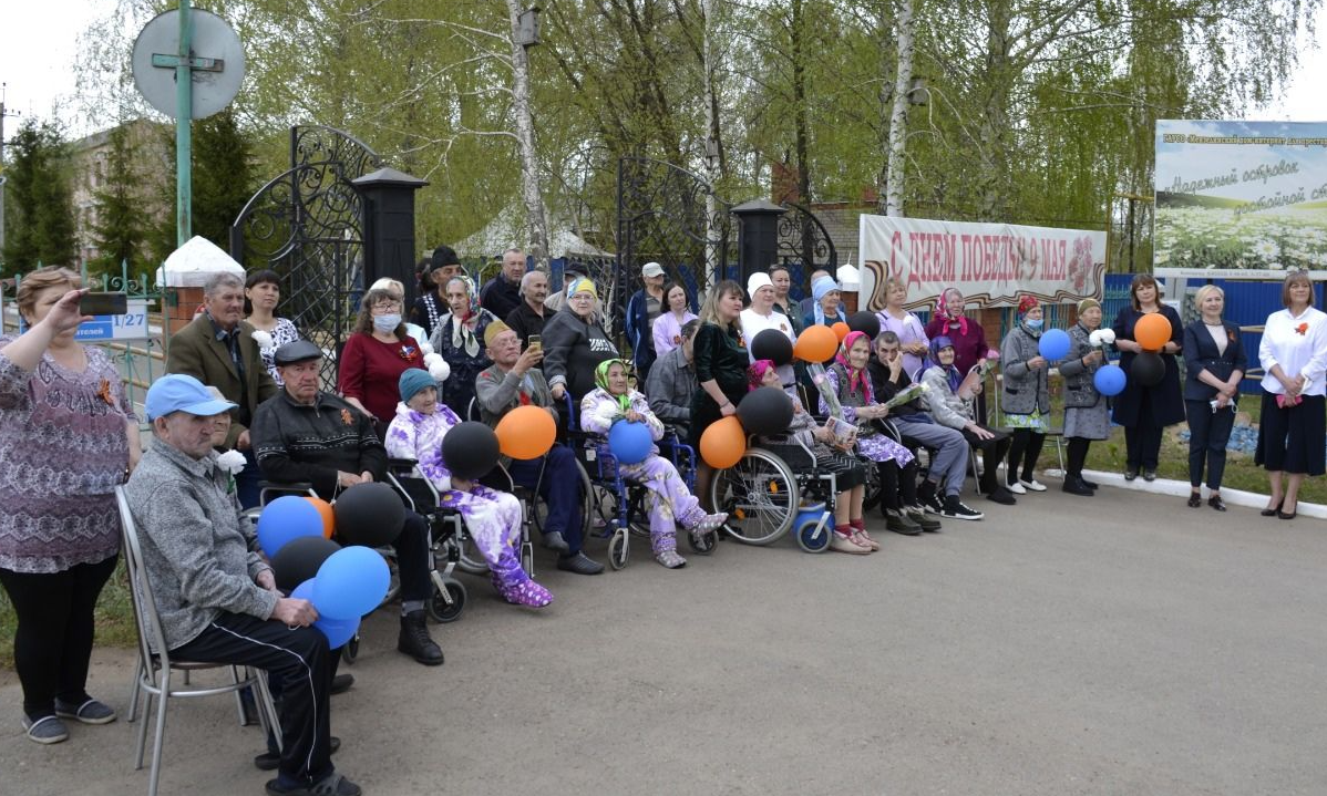 К сожалению, происходит сокращение числа не только героев войны, но и ветеранов тыла. И в этом году была проведена традиция чествование живых, получившая новую окраску: ветеранов поздравляли не только перед их детьми, родственниками, но и так, чтобы об этом знали и те, кто живет рядом с их домами, квартирами. Передвижная концертная бригада приехала к домам, квартирам, где живут Казакова Пелагия Васильевна, Шакирова Азгария Закировна, Пожалуева Роза Рахимовна, Макаров Николай Петрович, Лисагин Василий Михайлович. Жильцам Дома милосердия также устроили концерт, подъехав к учреждению, где они живут. Сотрудники отдела культуры и представители сельхозтехникума с композицией Родина-мать пели и танцевали. В составе праздничного эскорта были и две раритетные техники из автомобильного музея Рамиля Каримова. Официальные лица, входящие в состав делегации, сказали слова поздравлений.