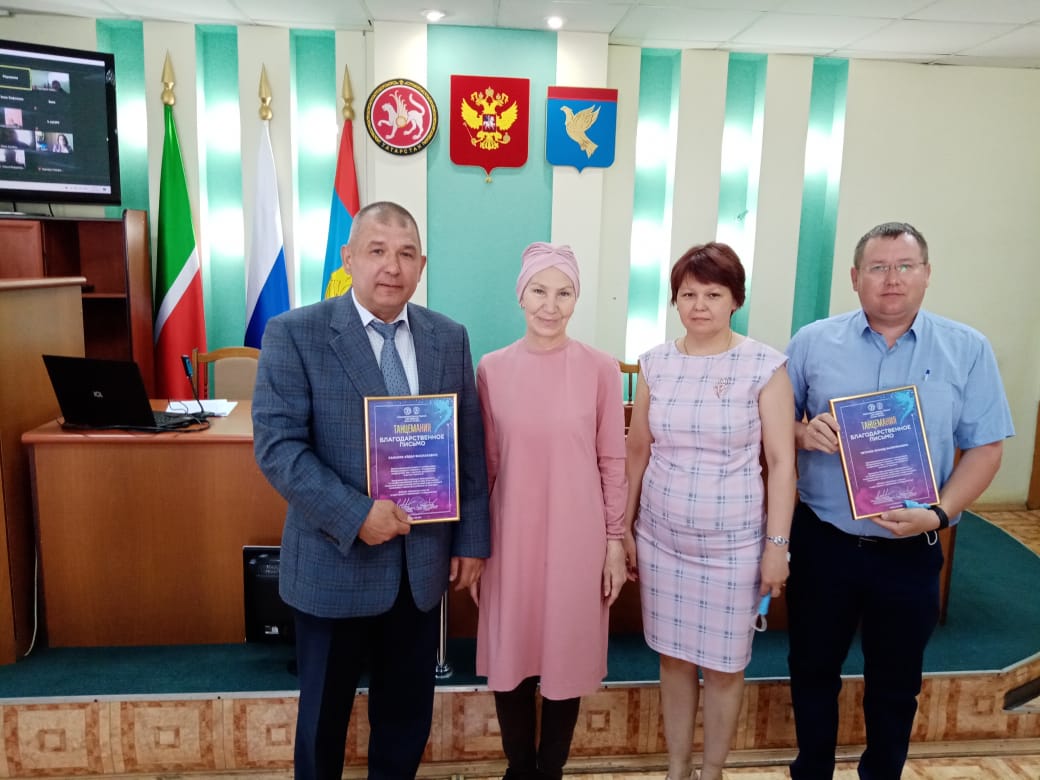 Сегодня глава района Айдар Салахов провёл еженедельное совещание, на котором перед руководителями были поставлены задачи для выполнения на предстоящей неделе. Также в ходе совещания глава вручил диплом танцевальному ансамблю «Уен», поздравив с высокой наградой в Международном конкурсе «Танцемания». Выразил слова благодарности бессменному руководителю ансамбля Розе Биктагировой, отметив её огромный вклад в развитие культурного и социально-нравственного воспитания подрастающего поколения. В свою очередь, она передала Благодарственные письма от оргкомитета конкурса за высокий результат и профессиональную подготовку участников, адресованные главе района Айдару Салахову, руководителю Исполнительного комитета Камилю Назмиеву и руководителю отдела образования района Леониду Петраеву.