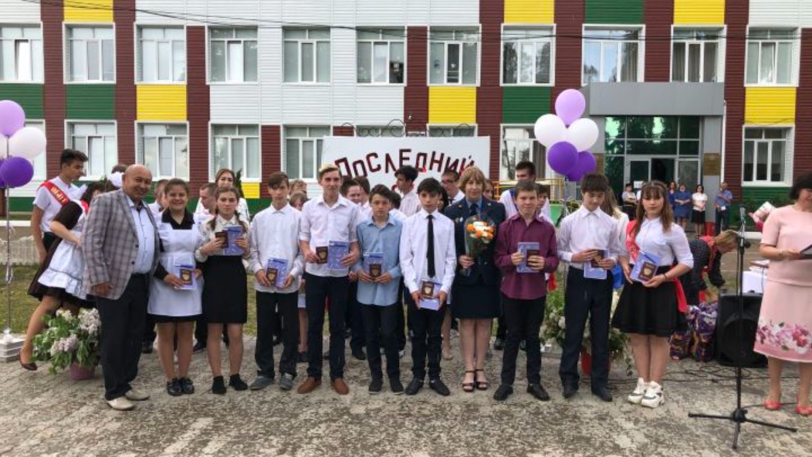 В день Последнего звонка в школе состоялось еще одно событие: торжественная церемония вручения паспортов молодым гражданам Российской Федерации.