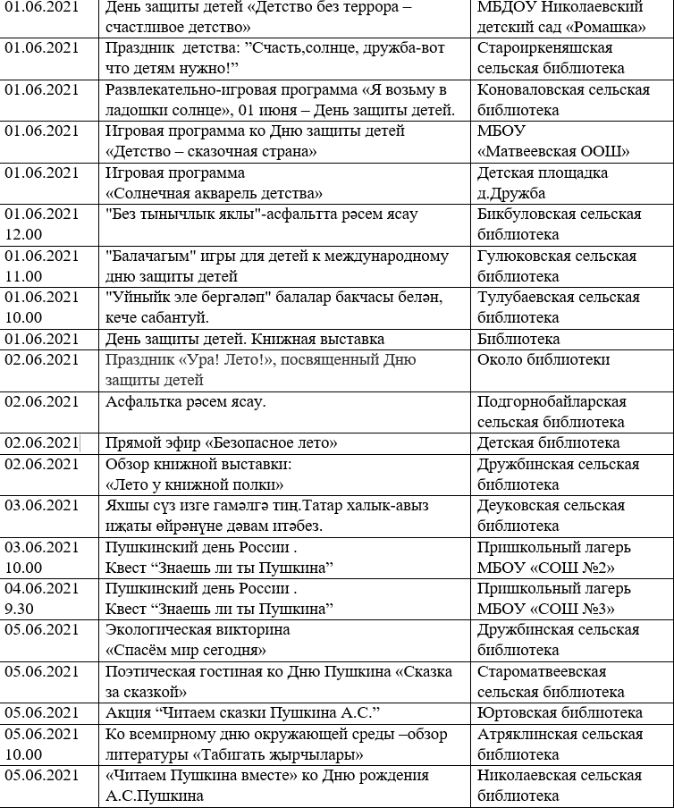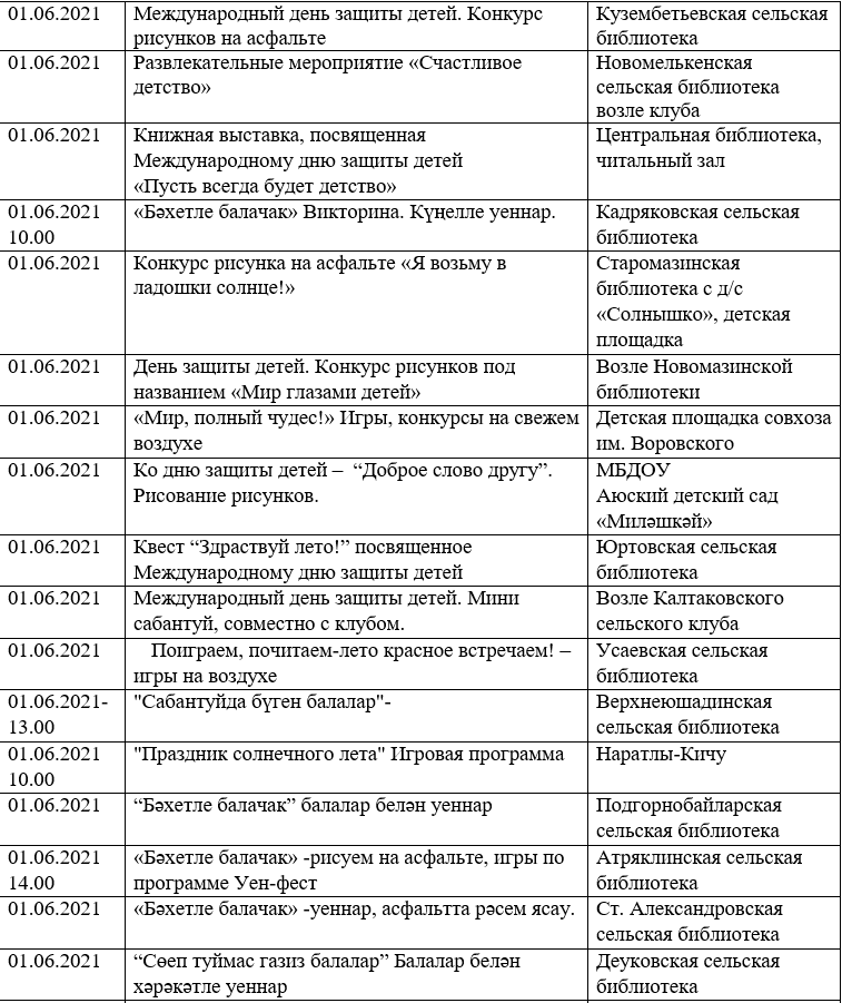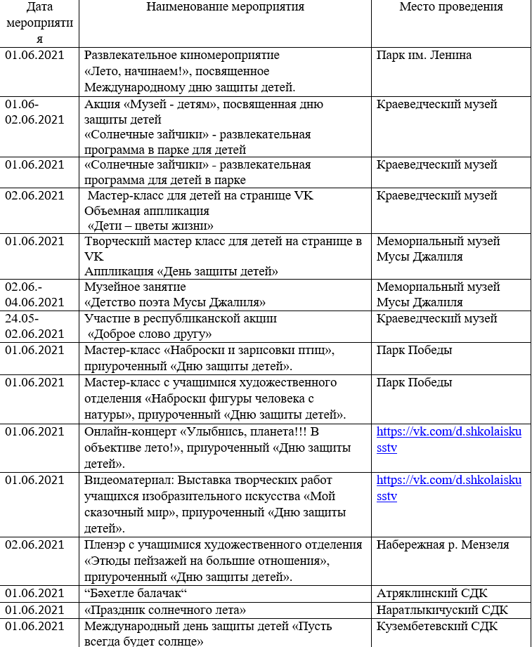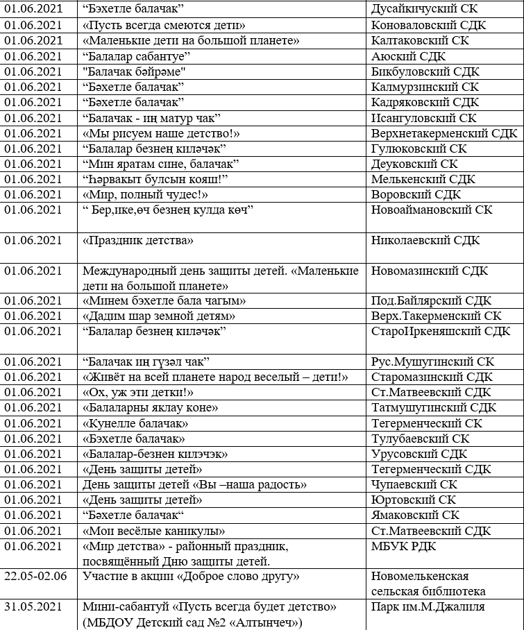 План мероприятий, приуроченных ко Дню защиты детей, в Мензелинском районе.