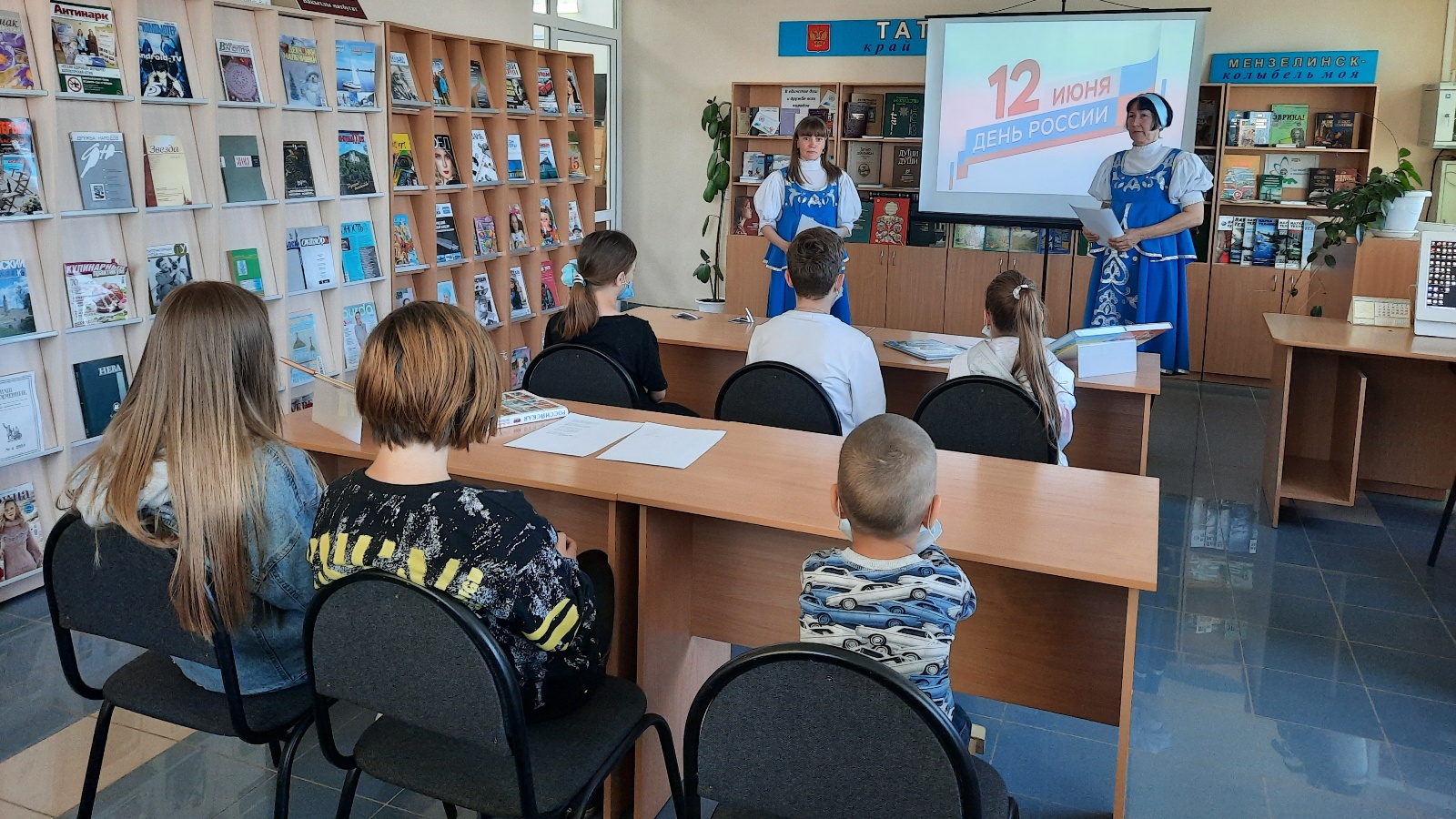 Ко Дню России специалист по работе с семьей Комплексного центра социального обслуживания населения в Мензелинском муниципальном районе Бывальцева Ольга для несовершеннолетних получателей социальных услуг в рамках реализации рабочей программы по патриотическому воспитанию несовершеннолетних через профессиональную ориентацию «Родина начинается с тебя» организовала экскурсию в центральную библиотеку города на тему «Это все о России». Цель мероприятия- уважение к истории России, ее символам; воспитание чувства патриотизма, гордости за нашу страну.