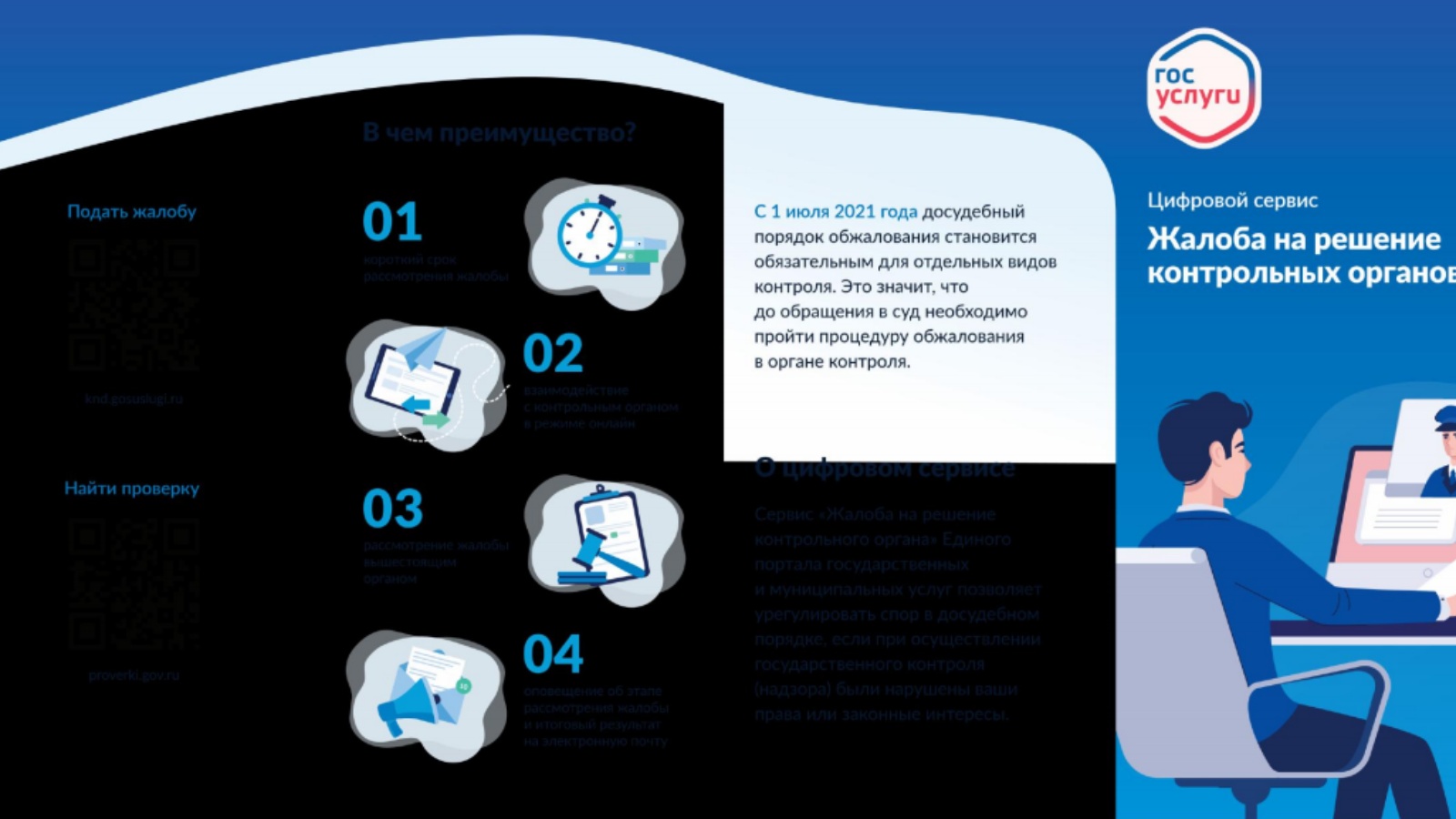 Информируем, что в связи с вступлением в силу с 1 июля 2021 года Федерального закона от 31 июля 2020 года № 248-ФЗ «О государственном контроле (надзоре) и муниципальном контроле в Российской Федерации» станет доступна процедура досудебного обжалования решений федеральных органов государственного контроля (надзора) для наиболее распространенных видов государственного контроля (надзора) (например, МЧС России, Роспотребнадзор).
