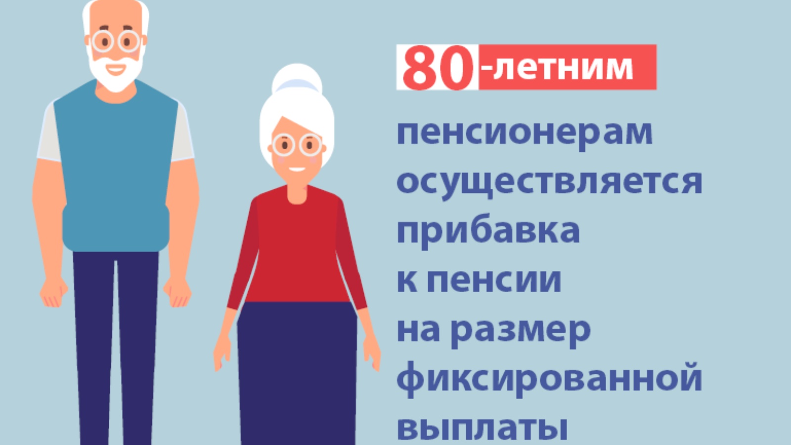 — Да, положена. Российским законодательством предусмотрены различные меры государственной поддержки граждан, достигших 80-ти лет. В частности, при достижении этого возраста в беззаявительном порядке проводится увеличение фиксированной части страховой пенсии по старости.