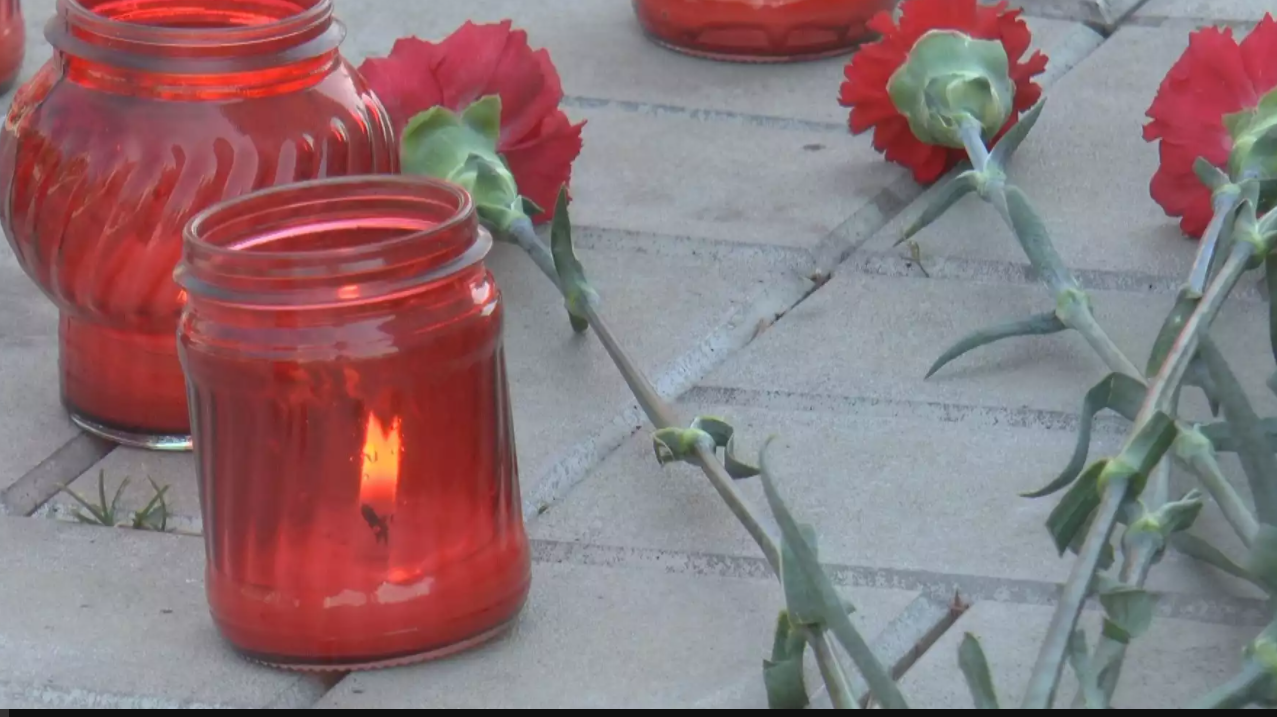 Затем к памятнику были возложены цветы и поставлены памятные свечи.