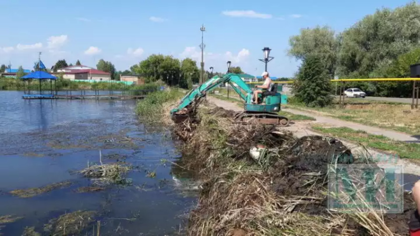 –Озеро буйно заросло камышами, его гладь засорена пластиковыми бутылками. Деревянный настил мостика и цветочной клумбы разрушаются. За летний период здесь накапливается много бытового мусора и местность подвергается загрязнению. В настоящее время проводятся работы по ремонту мостика, очистке озера и береговой зоны от бытового мусора и камыша с привлечением спецтехники. Также в дальнейшем будут произведены ремонт цветочной клумбы и облагораживание прибрежной территории.
