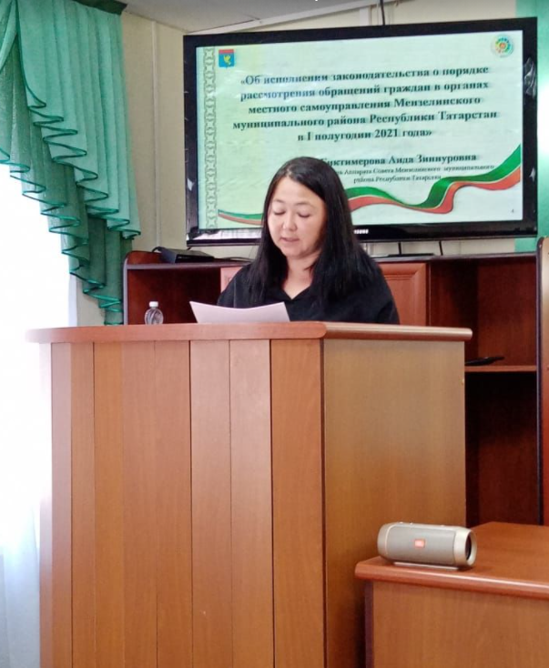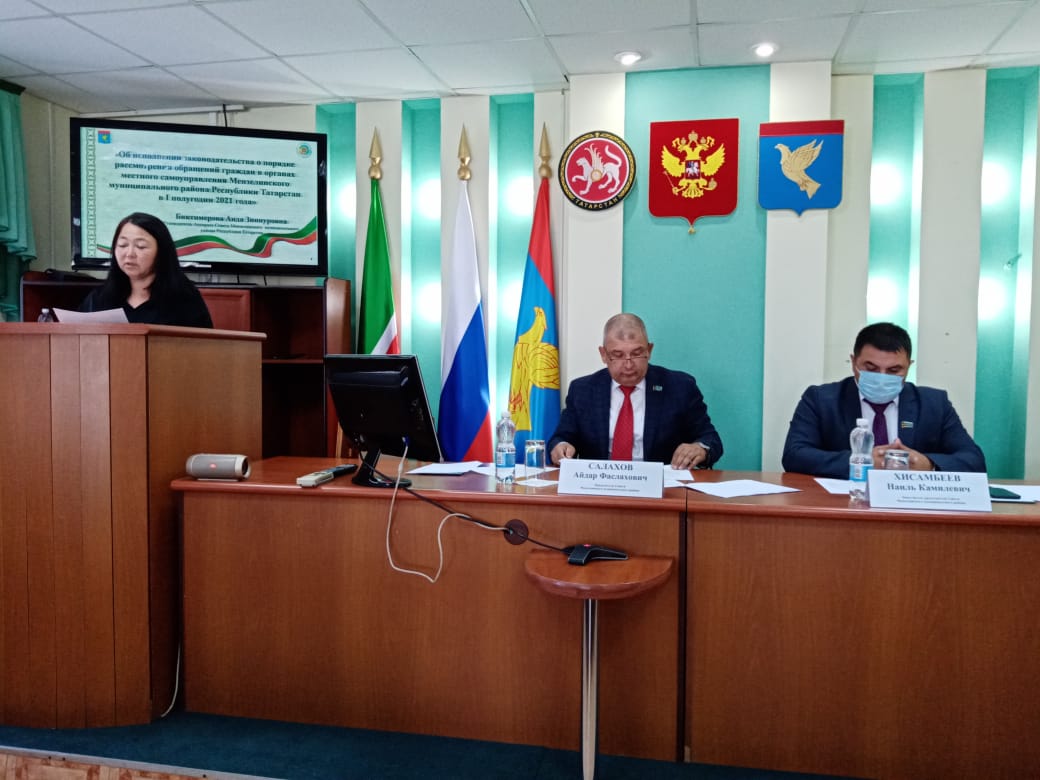 Руководитель Аппарата Совета района Аида Биктимерова рассказала об исполнении законодательства о порядке рассмотрения обращений граждан в органах местного самоуправления района в первом полугодии 2021 года, заместитель руководителя исполнительного комитета района Нэля Бикеева-об организации летнего отдыха на территории района.
