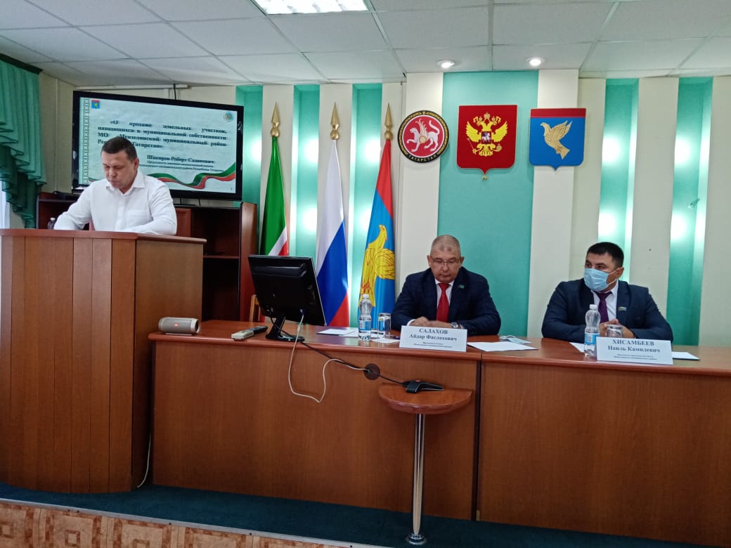 На заседании выступил председатель земельно-имущественной палаты района Роберт Шакиров с вопросом о продаже земельных участков, находящихся в муниципальной собственности района, Мензелинского муниципального района, на которых расположены здания, сооружения, собственникам таких зданий, сооружений либо помещений в них в случаях, предусмотренных статьей 39.20 Земельного кодекса РФ (его выступление будет опубликовано в следующем номере районной газеты).