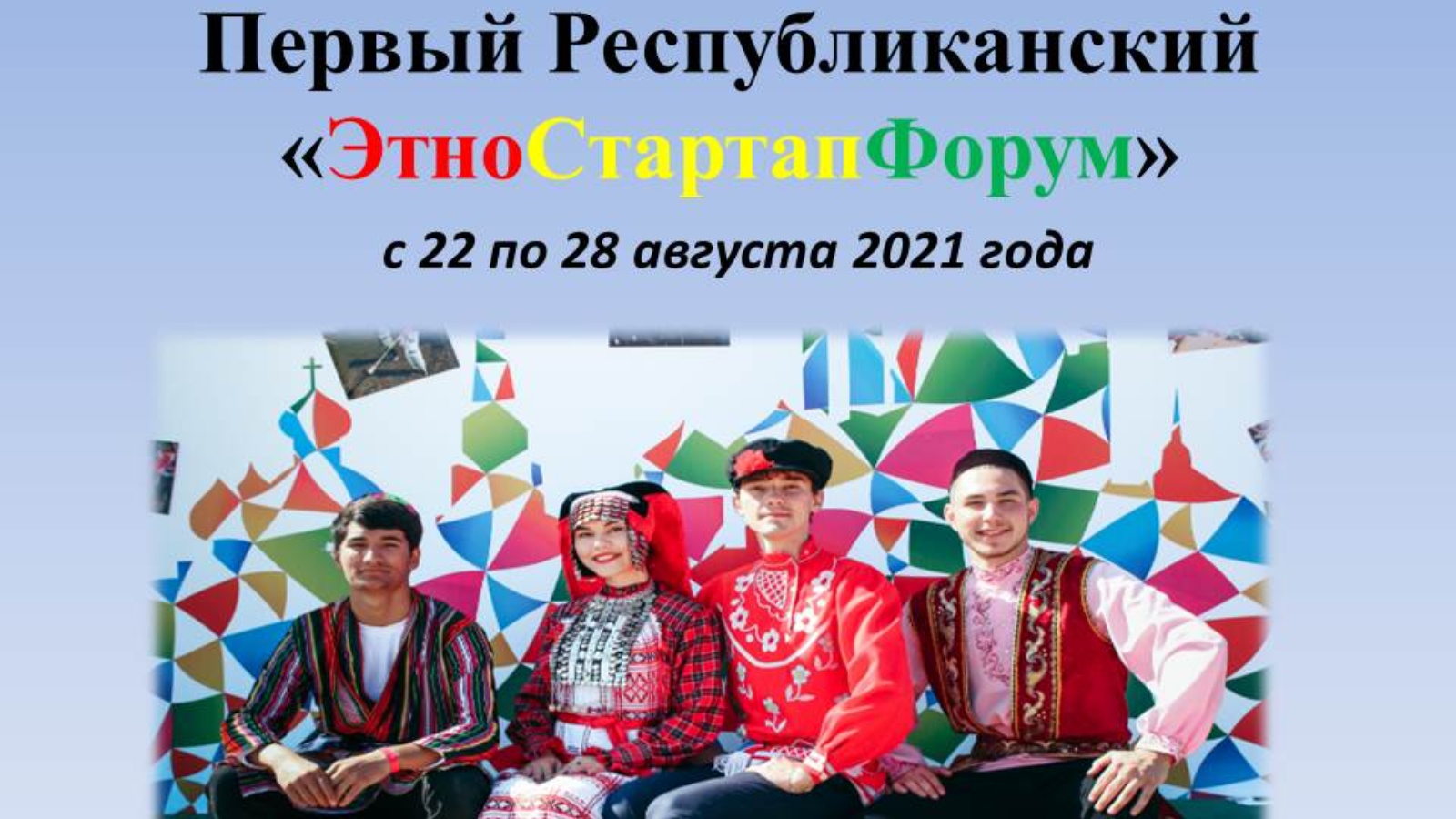 С 28 по 30 августа 2020 года в г.Казани Министерство по делам молодежи Республики Татарстан проводит Первый Республиканский «ЭтноСтартапФорум».
