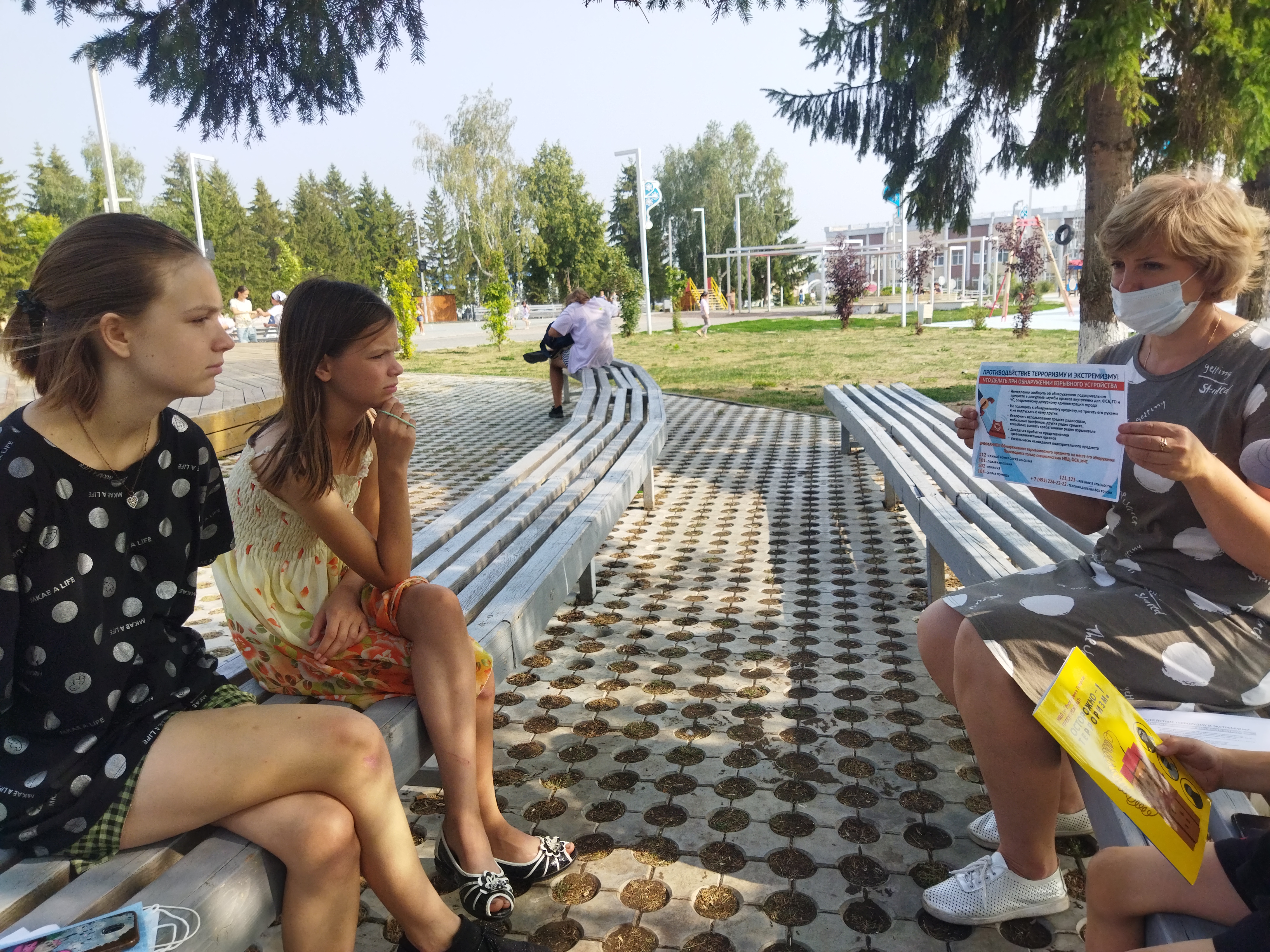 В рамках программы по развитию правовой грамотности, правосознания и личностной безопасности несовершеннолетних «Защитим себя и мир» в Мензелинском комплексном центре социального обслуживания населения специалистом по работе с семьей отделения социальной помощи семье и детям Кудряшовой Наталией была проведена акция «Жизнь в безопасном мире» с несовершеннолетними, получателями социальных услуг и потенциальными клиентами в парке города. Были распространены памятки и методические инструкции по противодействию терроризму и экстремизму среди подростков. Также была проведена разъяснительная беседа о действиях в экстремальных ситуациях.