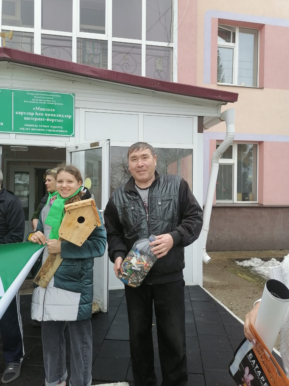 Грустно, когда досуг пожилого человека сводится к просмотру телевизионных передач и разгадыванию сканвордов. Чем же занять пожилого человека, особенно если он редко выходит из дома. Учащиеся начальных классов изготовили скворечники и подарели их пожилым. Пусть они любуются, выходя на прогулку, скворцами, которые поселятся в этих домиках. В рамках акции "Сдай батарейку - спаси ежа" проживающие передали им собранные для утилизации батарейки.