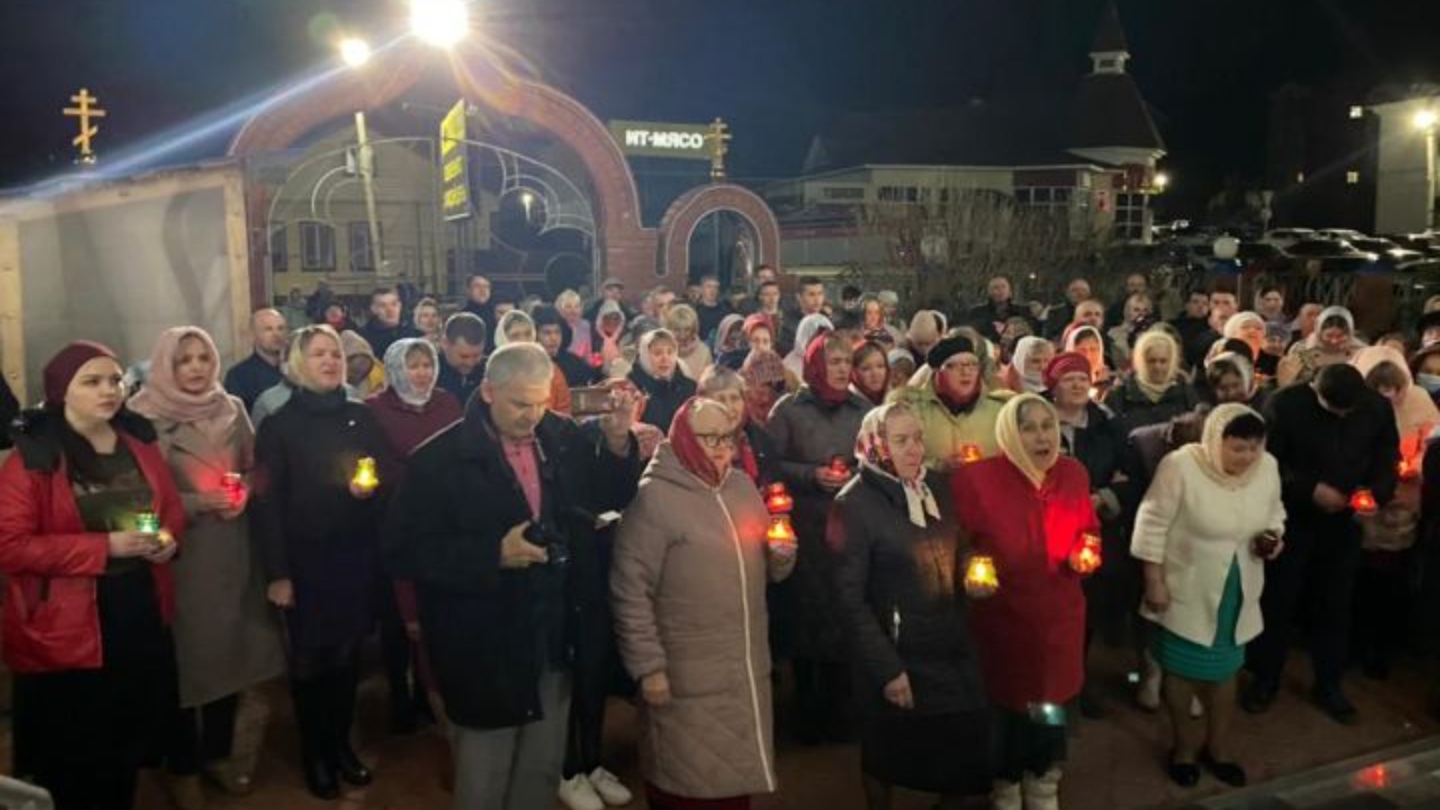 В полночь православные прошлись крестным ходом, а затем состоялось освящение куличей.