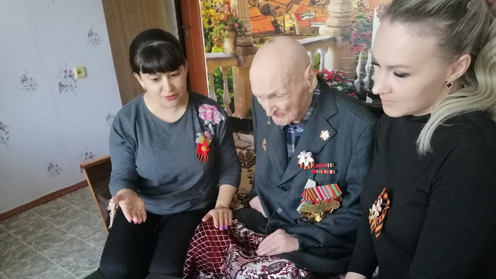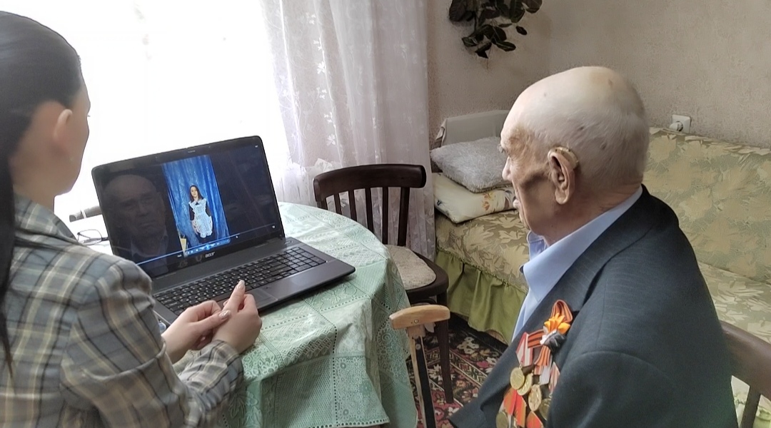 Поздравление для ветеранов было подготовлено заранее в формате видео в рамках программы по патриотическому воспитанию несовершеннолетних получателей социальных услуг. Дети прочитали стихи о войне, спели военные песни и смонтировали видеоролик. Специалисты показали ветеранам видеопоздравление, вручили открытки, георгиевские ленточки и пожелали им крепкого здоровья.