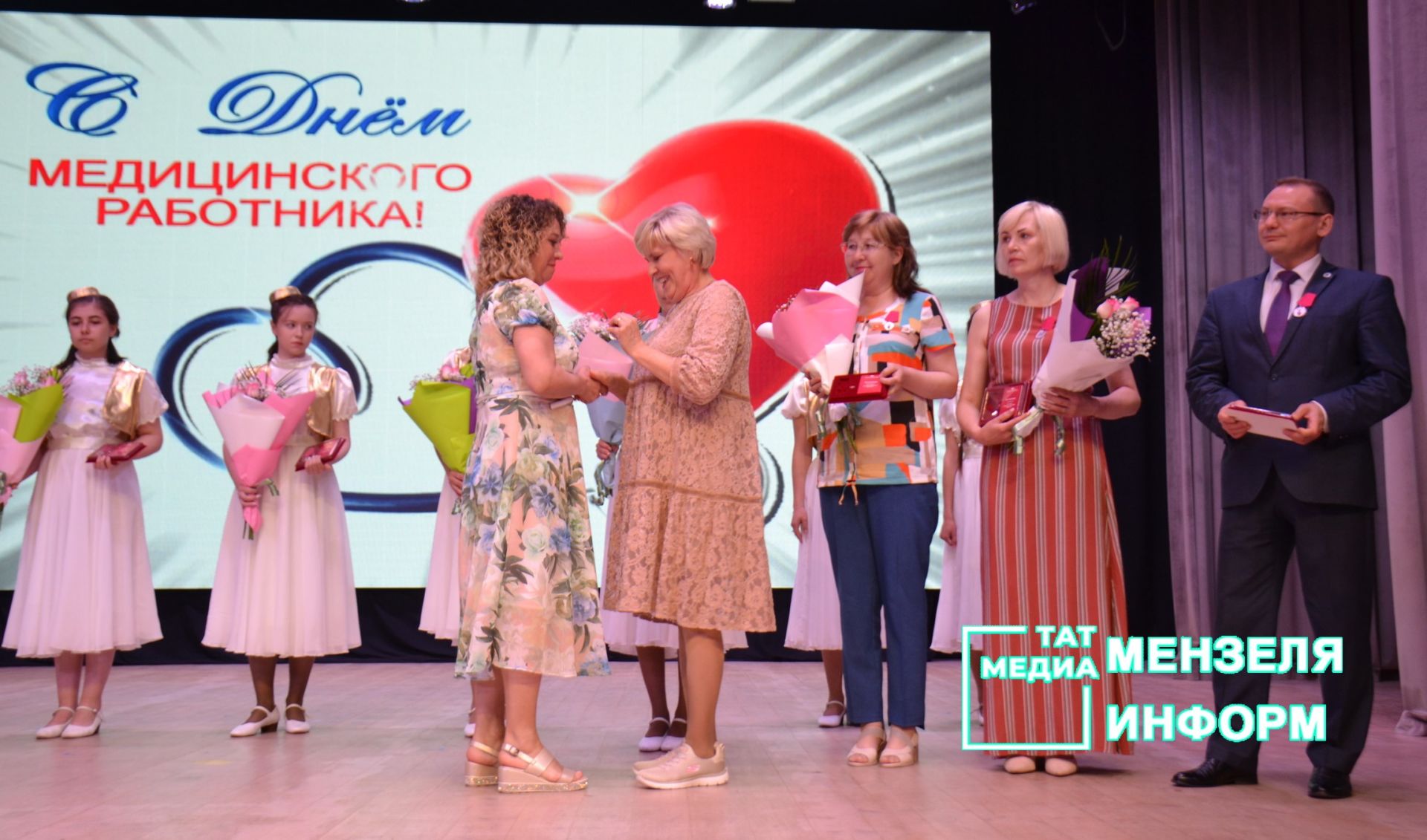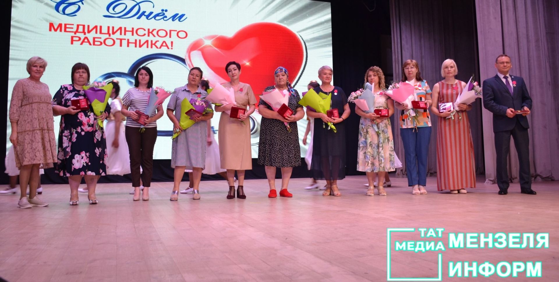 В Мензелинском Дворце культуры состоялось праздничное мероприятие, посвященное Дню медицинского работника. В зале присутсвовали работники медицинской отрасли и ветераны, находящихся на заслуженном отдыхе. Их поздравили глава Мензелинского района Айдар Салахов, главный врач центральной районной больницы Наиль Мубаракшин. председатель первичной профсоюзной организации центральной районной больницы Валентина Баева.