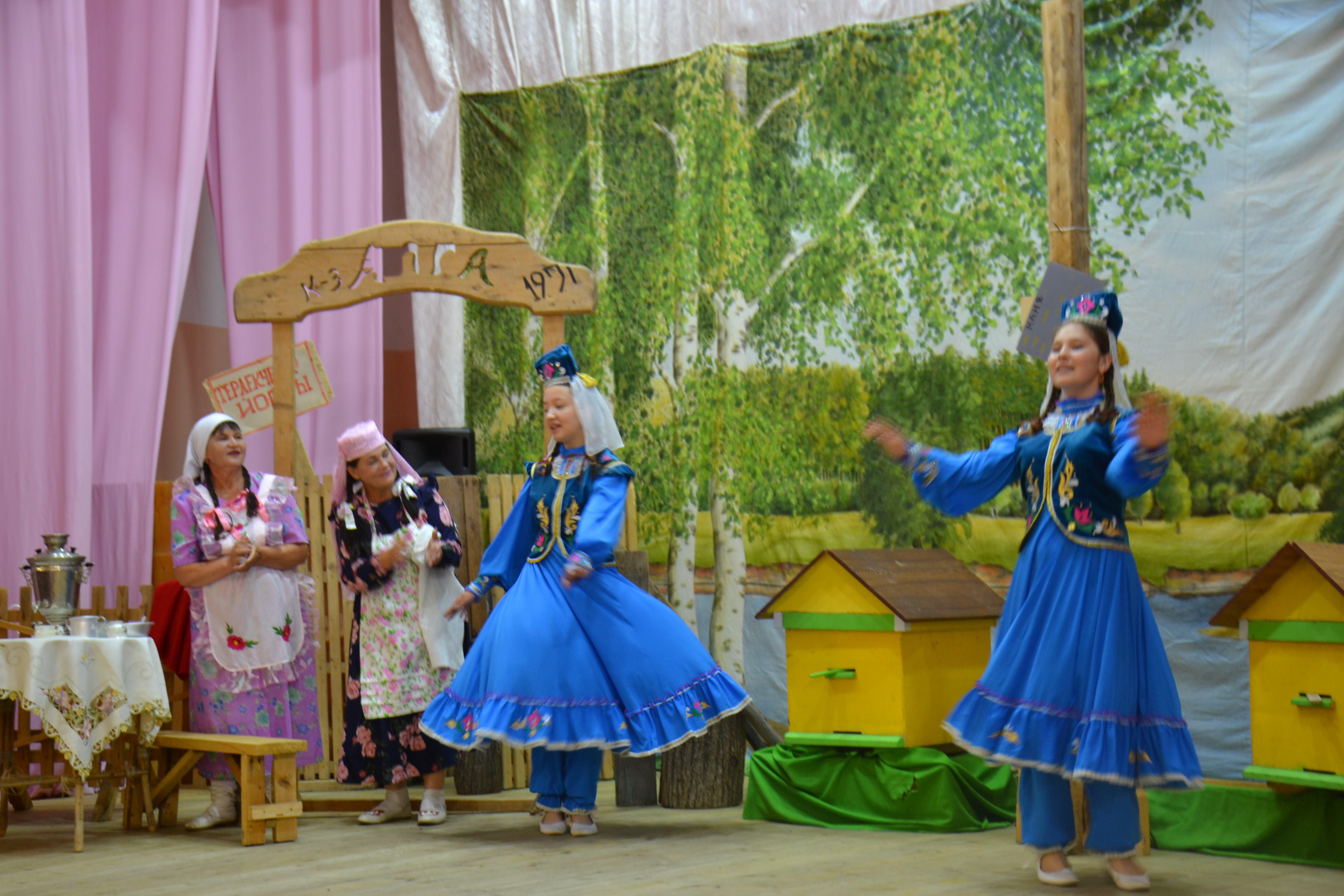 Работники культуры, самодеятельные артисты Подгорнобайларского сельского поселения показали историко-театрализованное представление об откачке мёда работниками колхоза, исполнили зажигательные татарские и марийские танцы.