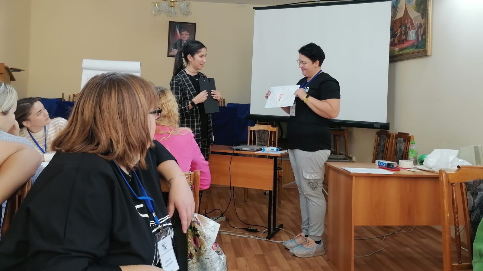 В сентябре психологи Мензелинского комплексного центра социального обслуживания населения Бочкарева Евгения и Газетдинова Ольга приняли участие в тренинге-семинаре на тему: «Методы и подходы социально-психологической работы с несовершеннолетними по профилактике безнадзорности и правонарушений». Семинар прошел на базе Университета управления «ТИСБИ» в городе Казань. Обучение проводили специалисты тренинговой компании TeamSoft. В ходе двухдневной работы психологи освоили технологию построения тренинга, познакомились с техниками «Воспоминание из будущего», «Техника шкальных оценок», «Шляпа», «Кинометафора», а так же с упражнениями «Шагай - стой», «Тетя Мотя», арт-терапией «Я и стресс», «Танец». По результатам обучения были выданы сертификаты.