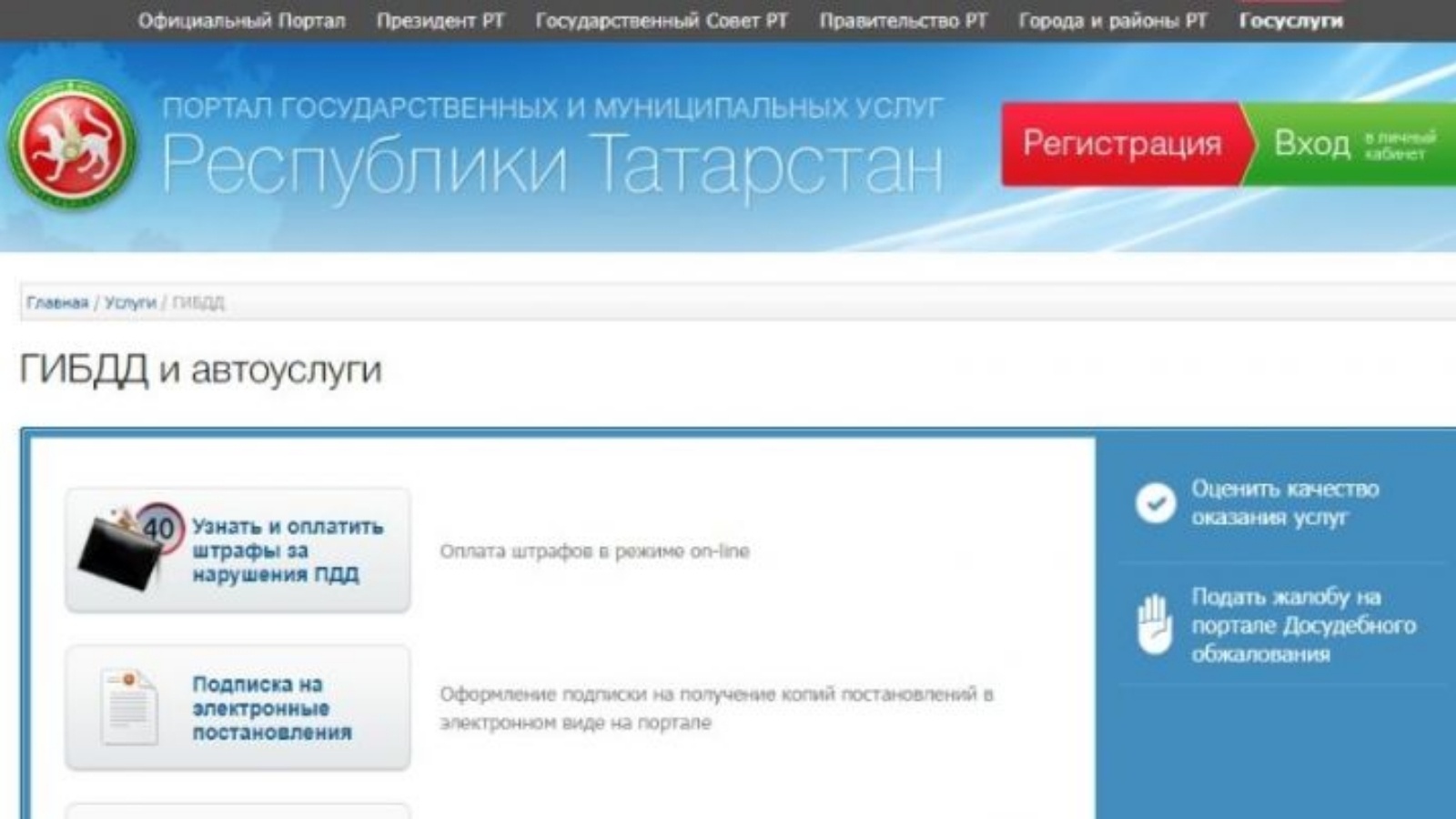 Для получения постановлений о штрафах за нарушения ПДД в электронном виде достаточно оформить подписку на Портале госуслуг Республики Татарстан в разделе «Услуги ГИБДД», используя стандартную запись ЕСИА.
