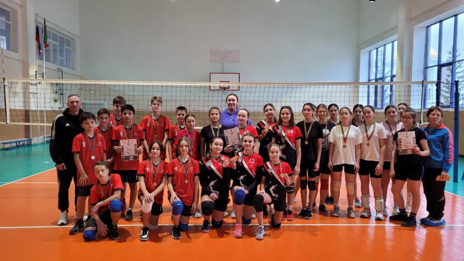 Сегодня, 5 ноября 2022г., в спортивном зале СШ «Юбилейный» состоялся турнир по волейболу, посвященный Дню народного единства. В соревнованиях принимали участие 3 команды: команда СОШ1, команда СОШ2 и команда СШ «Юбилейный» (тренер Вильданова Д.В.). Команда девушек в составе: Галимардановой Карины, Елшанской Златы, Минегалиевой Лилианы, Филаретовой Ангелины, Шайхутдиновой Елизаветы, Горячевой Арианы, Шамсуллиной Дианы, Кадыровой Алии, Фардиевой Эльвины принимали участие в соревнованиях. Места распределись следующим образом: