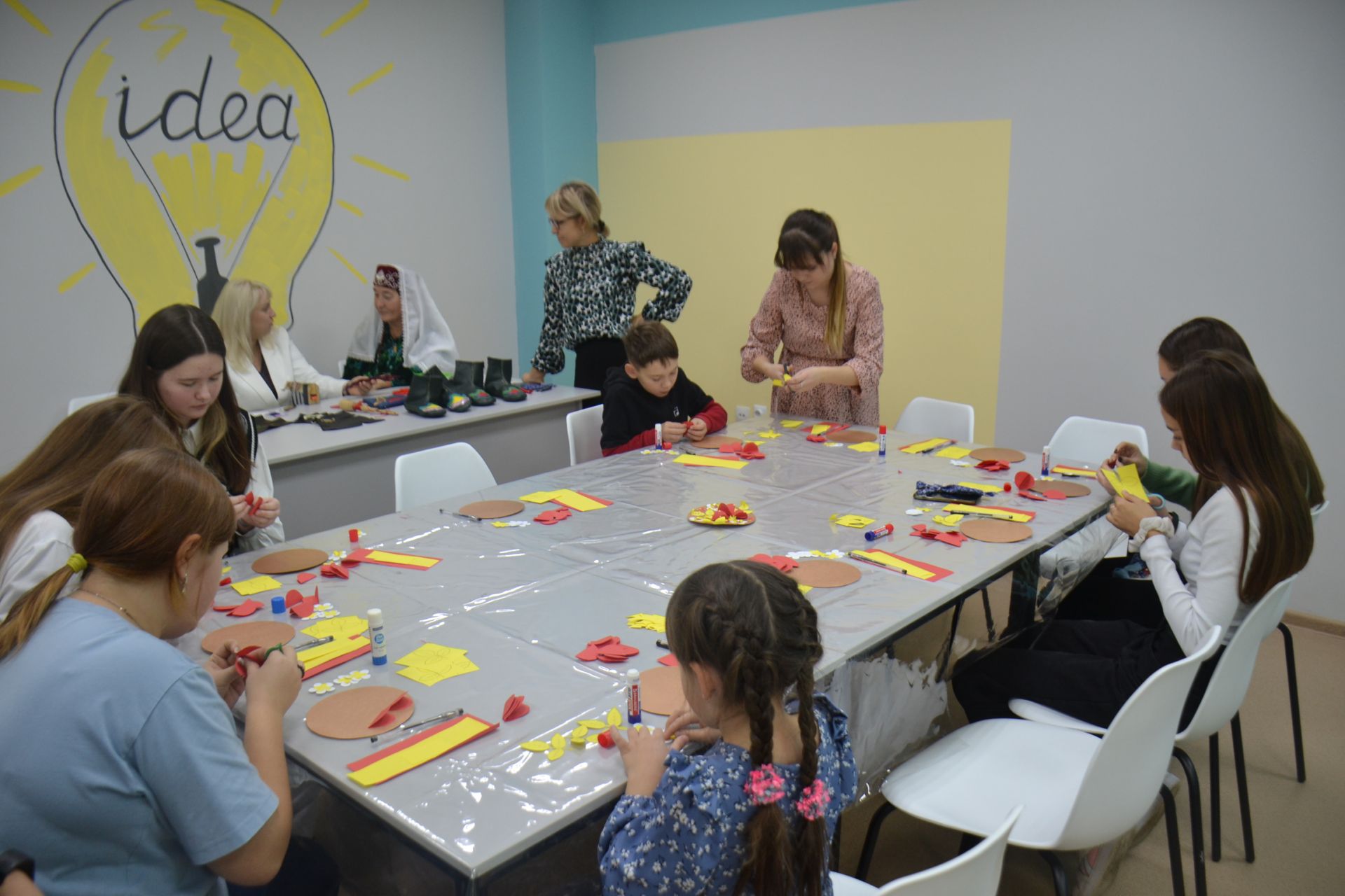 С большим интересом гости фестиваля приняли участие в проведенных в его рамках бесплатных мастер-классах. Так, Лейсания Гараева из села Кузембетьево провела мастер-класс по ичижному шву на коже, Александра Вахнина из Мензелинска – по вязанию из лоскутов древнеславянских кукол. Мастер-класс Эльвиры Бурхановой из Дома детского творчества был посвящен изготовлению панно из бумаги. Активное участие в проведении мастер-классов приняли участие преподаватели художественного отделения Детской школы искусств. Так, Екатерина Коротина ознакомила с секретами росписи матрёшек. А под наставничеством Ольги Горбуновой и Елены Митюшкиной все желающие смогли почувствовать себя художниками и нарисовать гуашью и акварелью.