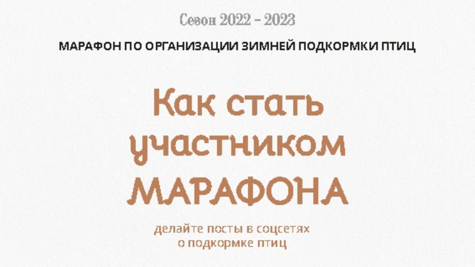 «Именно зима – то время года, когда пернатые нуждаются в нашей помощи, чтобы выжить в самые трудные времена. Но помогая птицам, важно делать это правильно, чтобы не навредить им, – говорят организаторы марафона #кормимптиц. – Присоединившись к марафону, вы узнаете много новой и полезной информации о птицах».