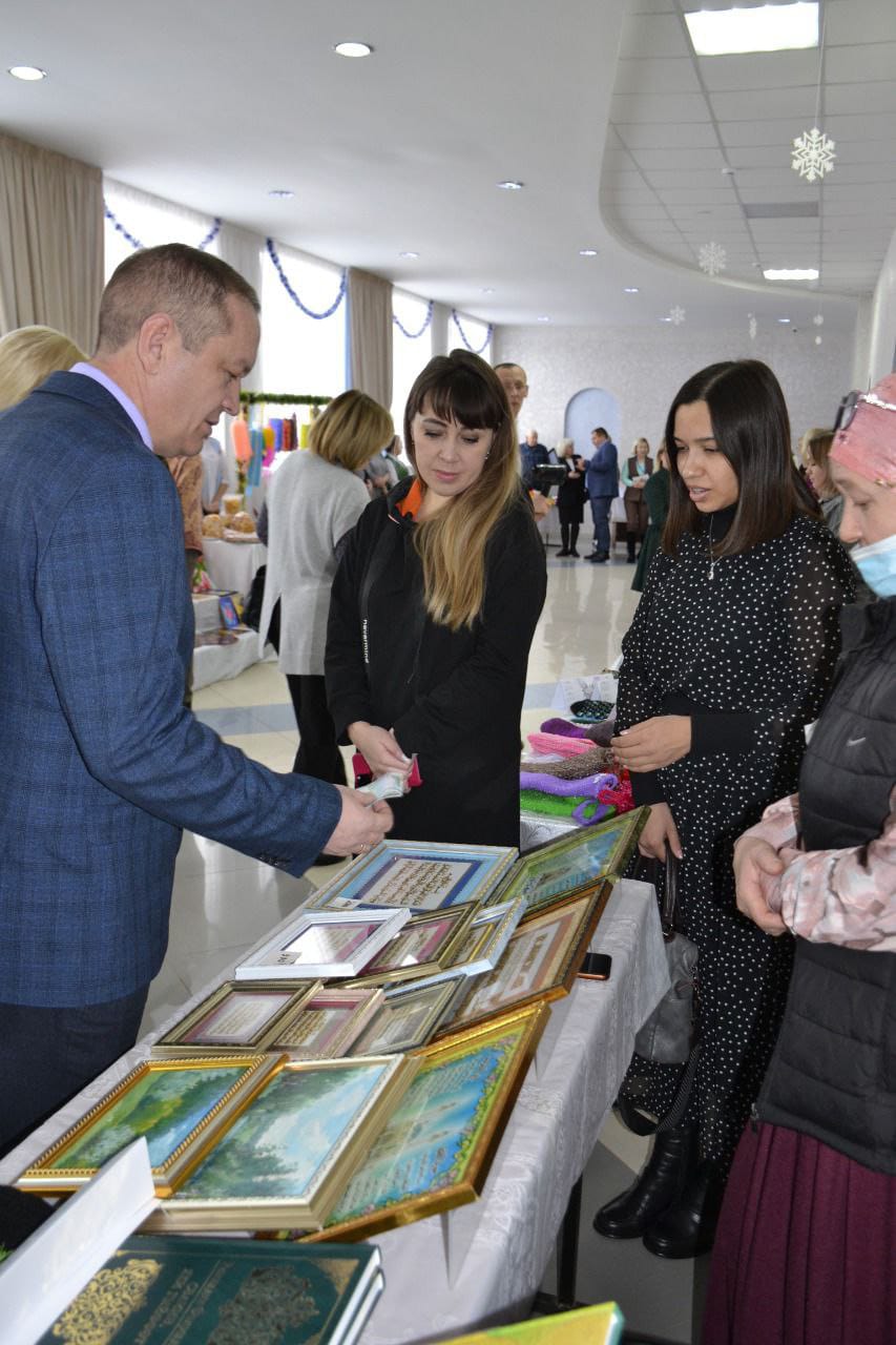 Как и в прошлые годы, в фойе районного Дворца культуры была организована специальная благотворительная ярмарка. Здесь силами работников учреждений образования и культуры района, других социальных организаций, воспитанников этих учреждений создана богатая выставка изделий ручной работы. Свои товары на ярмарке представили центральная районная библиотека, сельские клубы. Вырученные от их продажи средства будут переданы в благотворительный фонд.