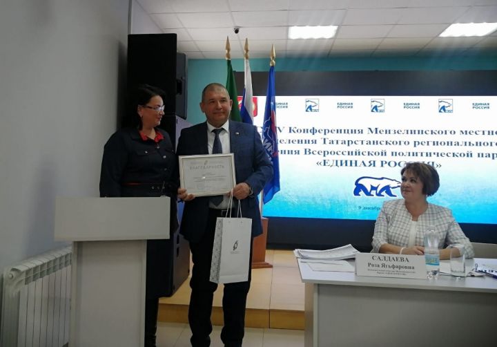 Работу конференции вел секретарь Мензелинского отделения, глава района Айдар Салахов. В работе конференции приняла участие помощник депутата Государственного Совета РТ Ирина Пузакова.