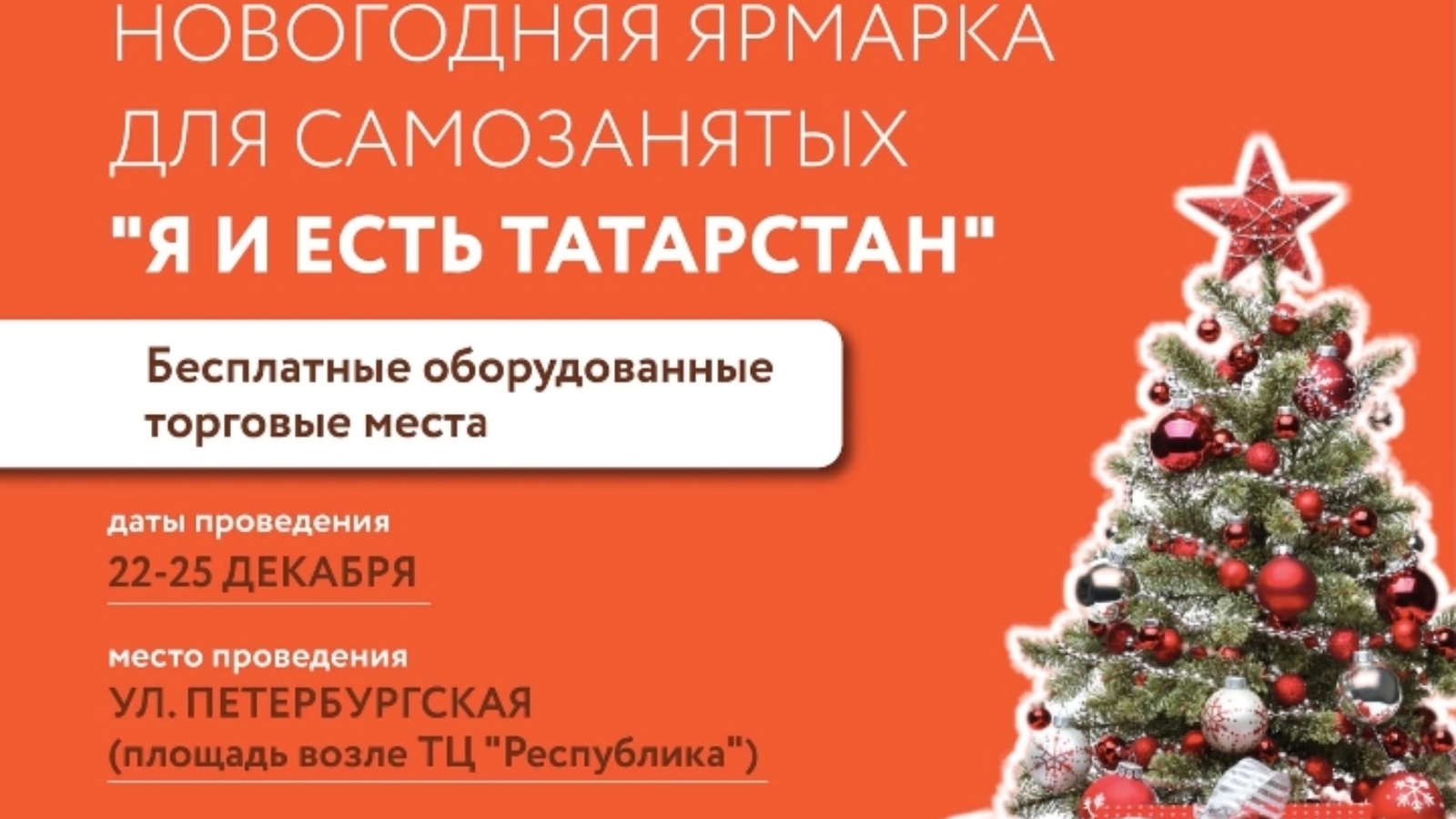 Ярмарка состоится по адресу: ул. Петербургская, на площадке у ТЦ Республика. Также в период работы ярмарки «Я и Есть Татарстан» планируется новогодняя развлекательная программа,