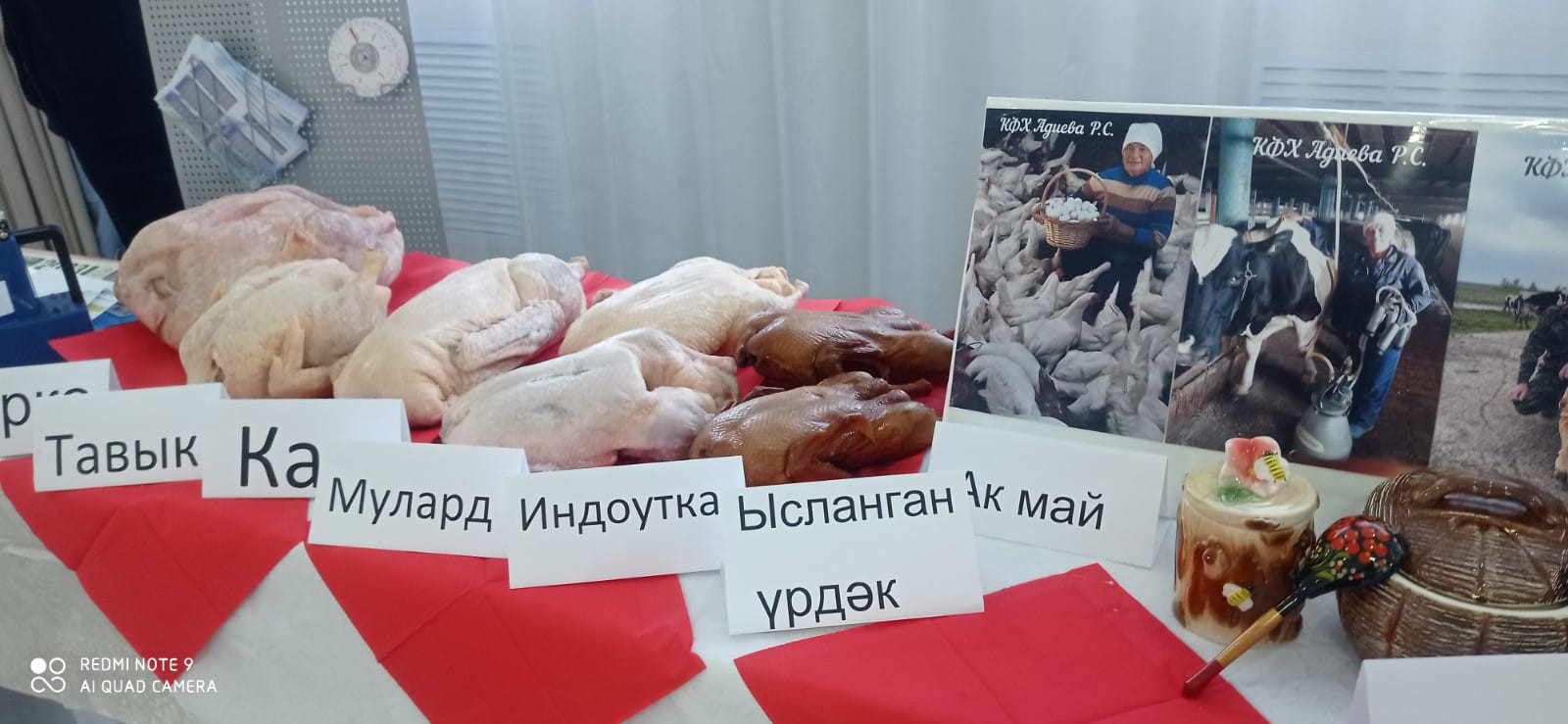 На выставке достижений сельского хозяйства района в фойе Дворца культуры были представлены кооператив “Нива”, рыбное хозяйство из Гулюкова, коллектив Мензелинской школы-интерната, Мензелинское отделение ООО ”Элита“, Мензелинский сельскохозяйственный техникум, Мензелинский хлебозавод, КФХ ”Давлетов“, фермерские хозяйства, изделия индивидуальных предпринимателей, продукция пчеловода района Фаниса Хайруллина.