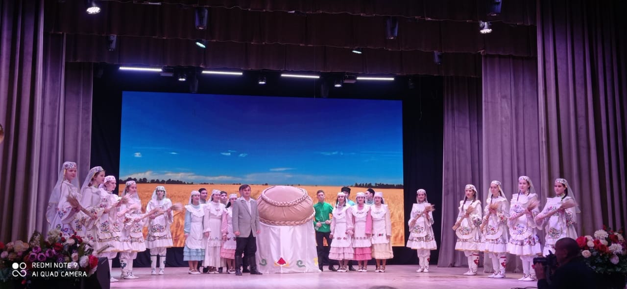 В зале собрались передовики сельскохозяйственного производства, фермеры, руководители сельхозпредприятий. Торжественную церемонию праздника урожая открыли ученики гимназии сценой из спектакля “Голубая шаль”. Открывая церемонию, глава района Айдар Салахов сказал: