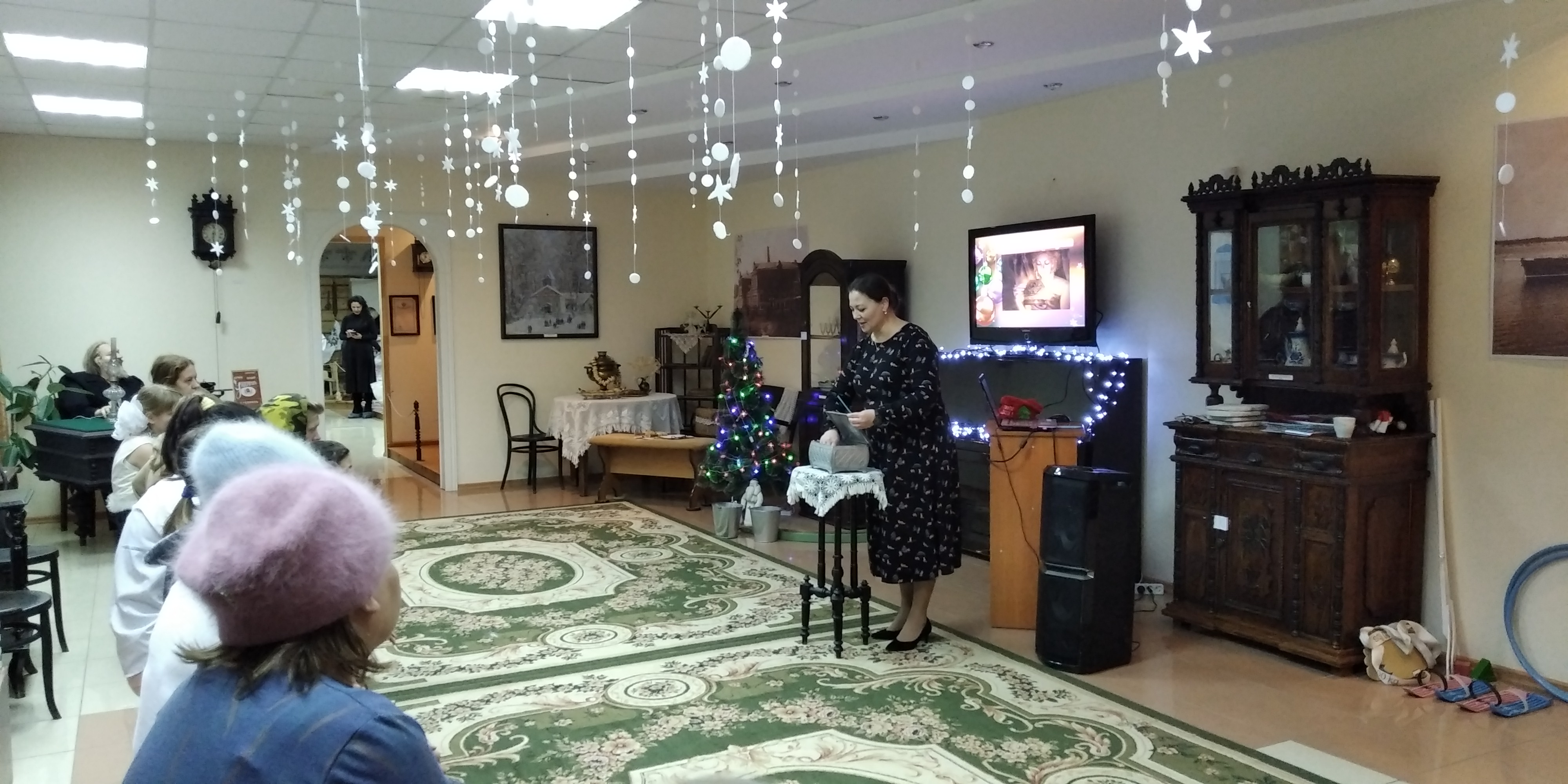 В начале мероприятия научный сотрудник музея Татьяна Мусина познакомила ребят с историей возникновения праздника, с традициями празднования Нового года на Руси. После чего дети отгадывали загадки, отвечали на вопросы викторины, состязались в интеллектуальных конкурсах, разгадывали анаграммы. Дети активно принимали участие в интересных, порою смешных конкурсах. В соревнованиях, эстафетах дети состязались на ловкость и быстроту. Все без исключения, получали за это сладкие призы.