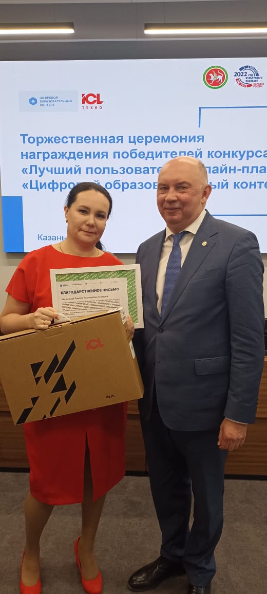 В казанском IТ-парке имени Башира Рамеева наградили победителей республиканского конкурса «Лучший пользователь онлайн-платформы „Цифровой образовательный контент”». Ими стали 50 учителей, активно использующих в работе эту платформу, и ученики, которые больше остальных пользовались educont.ru. Они получили в подарок ноутбуки. От Мензелинского района победителем стала учитель начальных классов МБОУ СОШ №3 Газизова Рамиля Амировна.