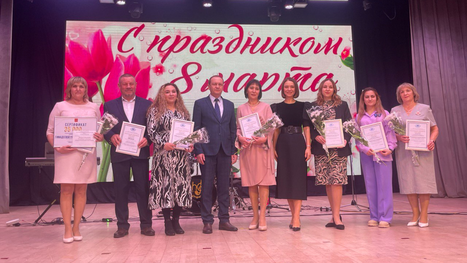 В районном Дворце культуры состоялся праздничный концерт “Хатын-кызларга багышлыйбыз...” ("Посвящаем женщинам..."). В начале концерта зрителей с Международным женским днем от себя лично и от имени главы района Айдара Салахова горячо поздравил руководитель Исполнительного комитета района Марат Каримов. На празднике присутствовала депутат Государственной думы РФ Альфия Когогина, которая поздравила женщин района и пожелала им всего наилучшего. Затем она поздравила победителей конкурса народного признания, организованного по её инициативе, среди учителей школ Мензелинского района "Самый классный КЛАССНЫЙ-2022”. Альфия Когогина вручила им благодарственные письма за высокий профессионализм и значительный вклад в воспитание детей и молодежи. Это Гульсария Динмухаметова (Николаевская общеобразовательная школа им.Сергея Кузнецова), Ксения Крючкова (городская СОШ № 2), Зиля Курбанкулова(городская СОШ № 3), Гульнара Рахматуллина (городская СОШ № 2), Алина Шайдуллина (Верхнетакерменская СОШ им. Габдулхая Сабитова). Победителем конкурса стала Разина Гимадеева (Мензелинская гимназия), которая получила денежный сертификат в размере 35 тысяч рублей. Также Альфия Когогина вручила коллективу газеты "Минзәлә" - "Мензеля" в лице руководителя-главного редактора Ильдуса Шагиева благодарственное письмо за помощь в организации конкурса. Районный Дворец культуры, хор ветеранов, педагогический колледж, детские сады подготовили красочные концертные номера в честь мам, сестер, бабушек. На праздник глава района Айдар Салахов сделал женщинам специальный подарок, пригласил из Казани заслуженную артистку Татарстана Лилию Муллагалиеву и вокально-инструментальный ансамбль “Илһам”. Лилия Муллагалиева показала концерт, посвященный женщинам. Концерт получился отличным, публика сопровождала выступления бурными аплодисментами.