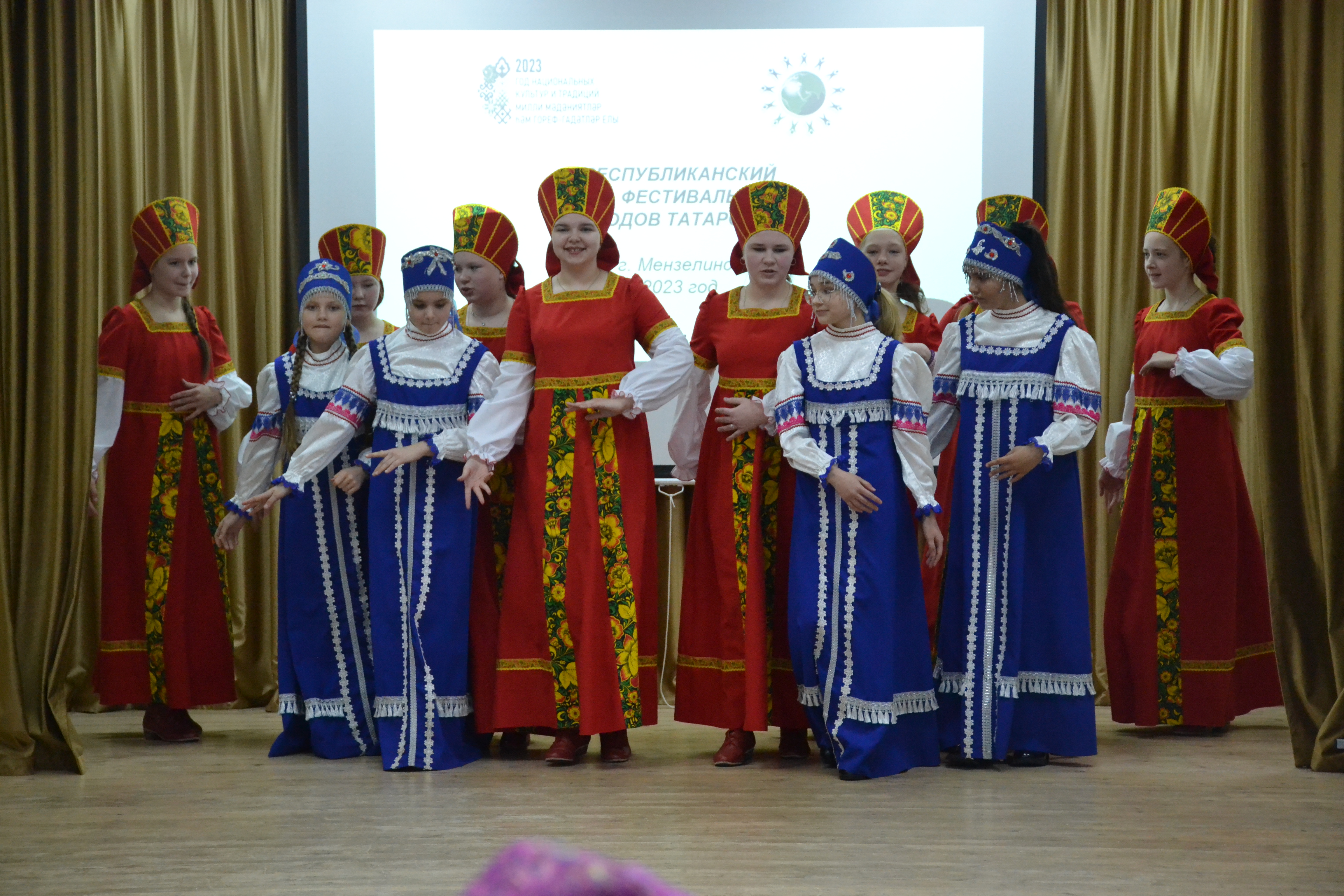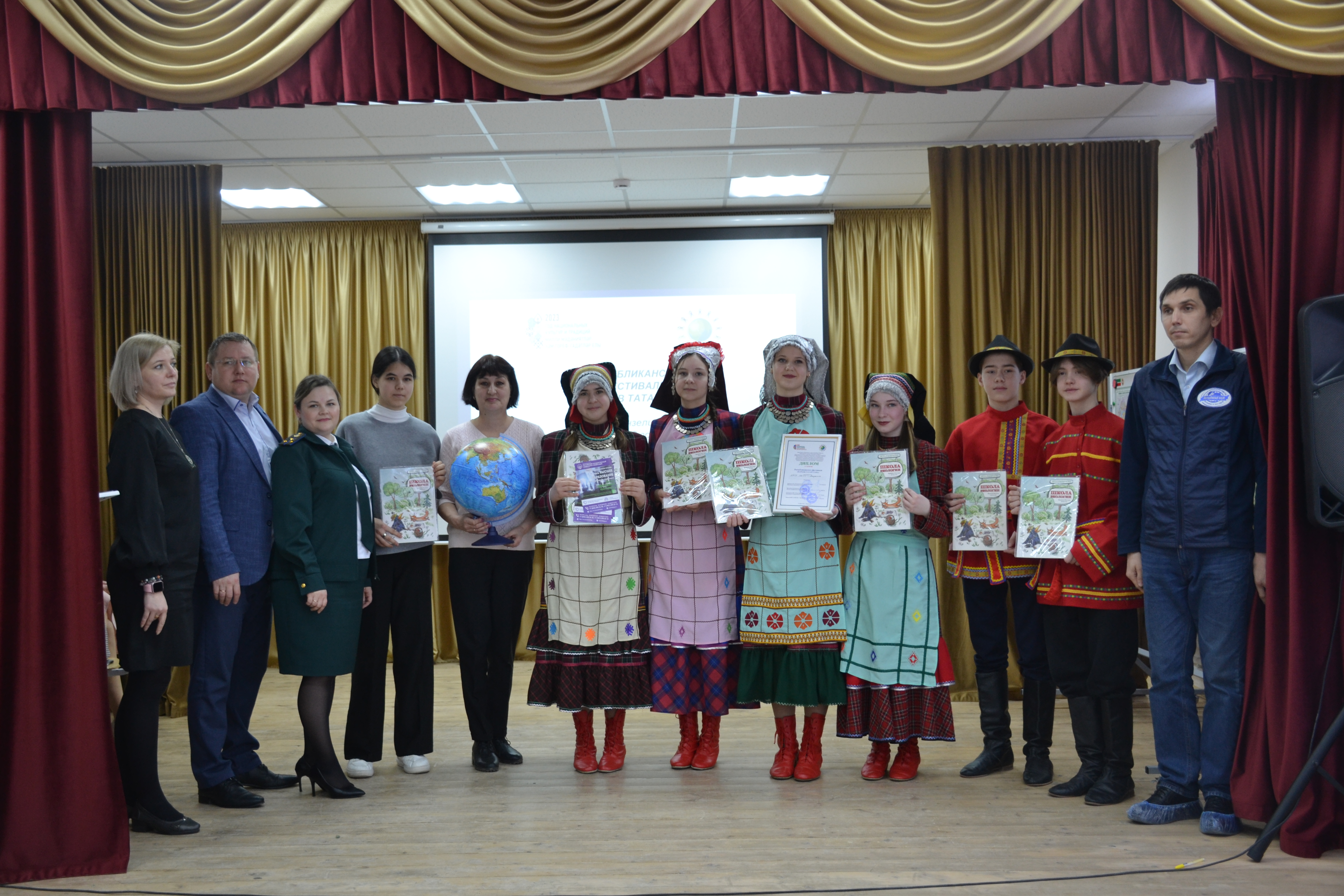 В этом году фестиваль был посвящен теме “Экологические традиции народов Татарстана”. Вначале выступили победители прошлогоднего фестиваля - команда Николаевской школы.
