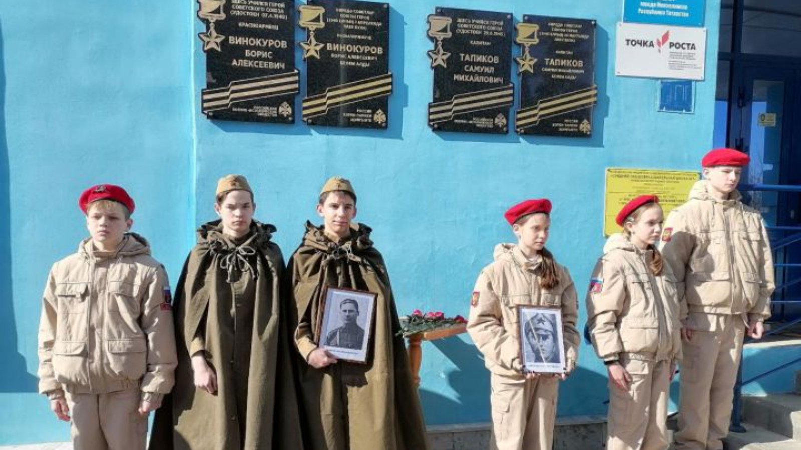 Сегодня в торжественной обстановке в средней школе № 1 состоялся митинг по открытию мемориальных досок с именами Героев Советского Союза Самуила Тапикова и Бориса Винокурова.