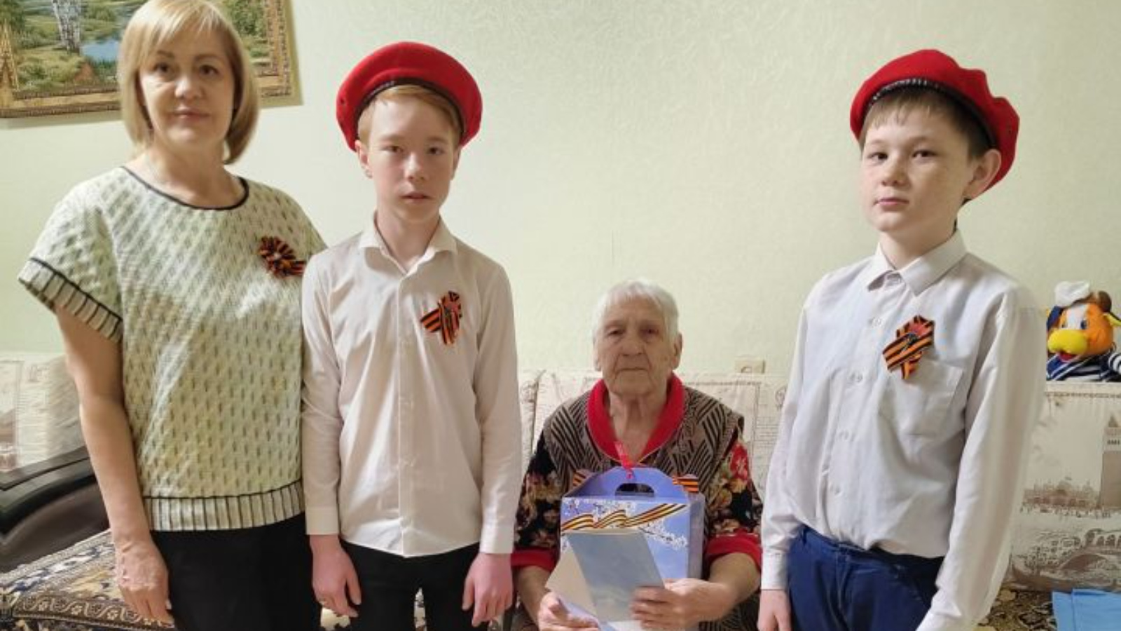 Начальник отдела социальной защиты населения в Мензелинском муниципальном районе Татьяна Мясникова, совместно с несовершеннолетними получателями социальных услуг, входящими в состав участников добровольческого детско-юношеского движения «Юнармия», поздравили на дому вдов участников Великой Отечественной войны 1941-1945г., тружеников тыла.
